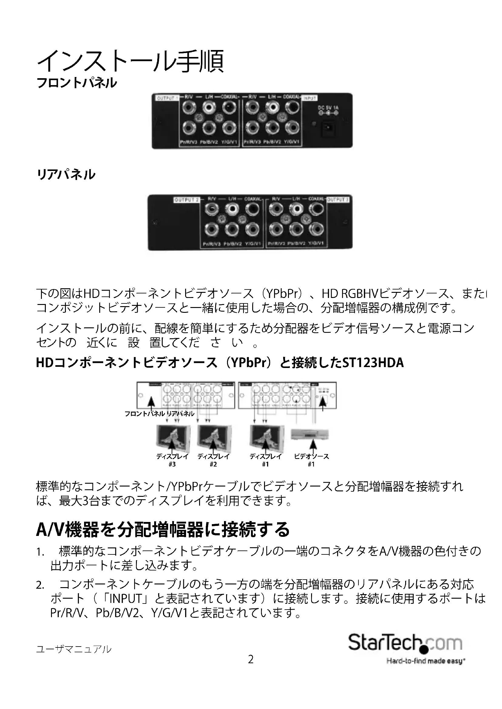 デバイスの取扱説明書をダウンロード 受信機 無料でPDF形式で!マニュアルを見つける ST123HDA - StarTech.com 電子デバイスをもとに戻しましょう。このページにはデバイスの使用に必要なすべての書類が掲載されています。 ST123HDA ブランド StarTech.com.