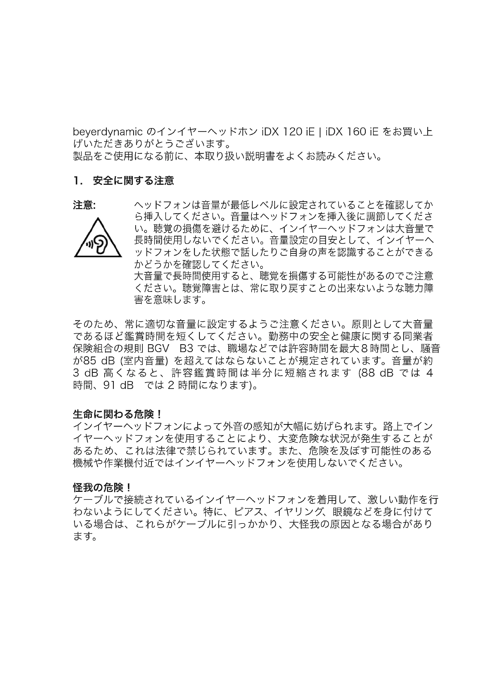 使用説明書 iDX 120 iE BEYERDYNAMIC