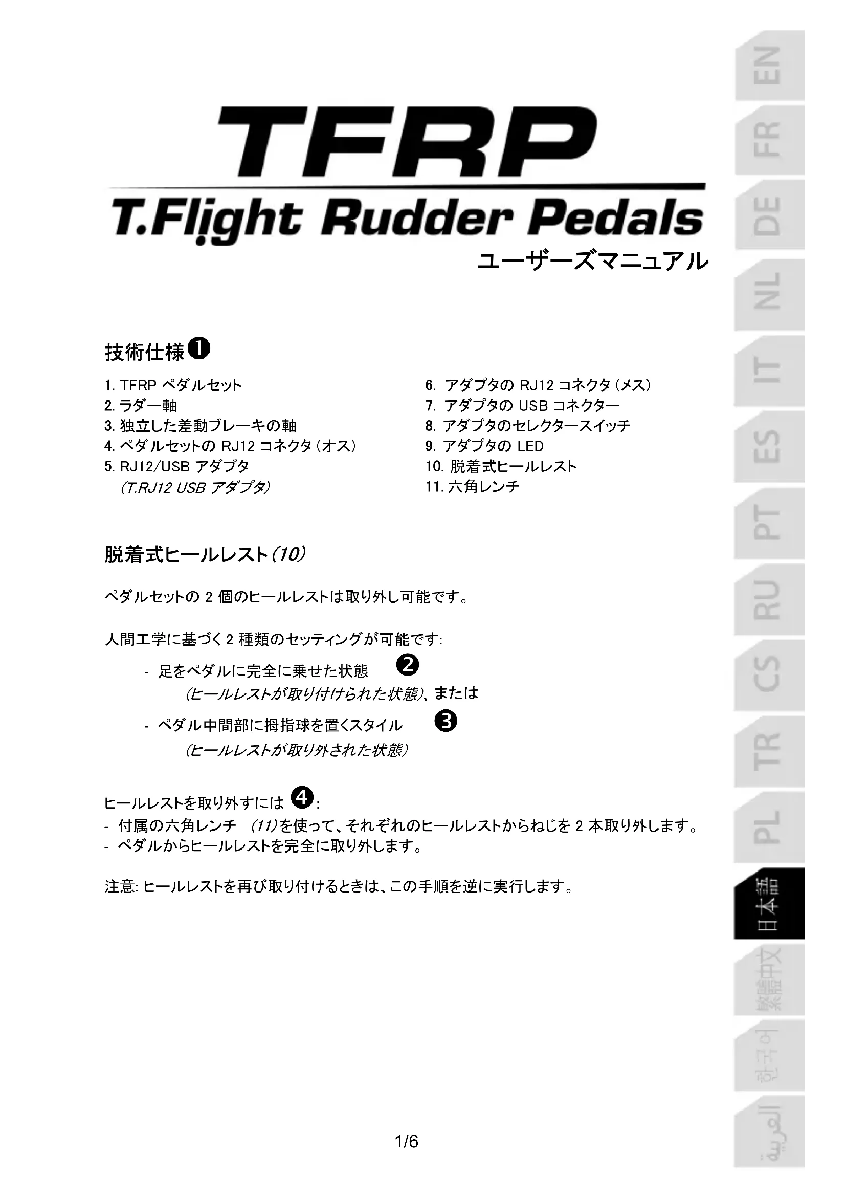 使用説明書 TFRP TFlight Rudder Pedals THRUSTMASTER