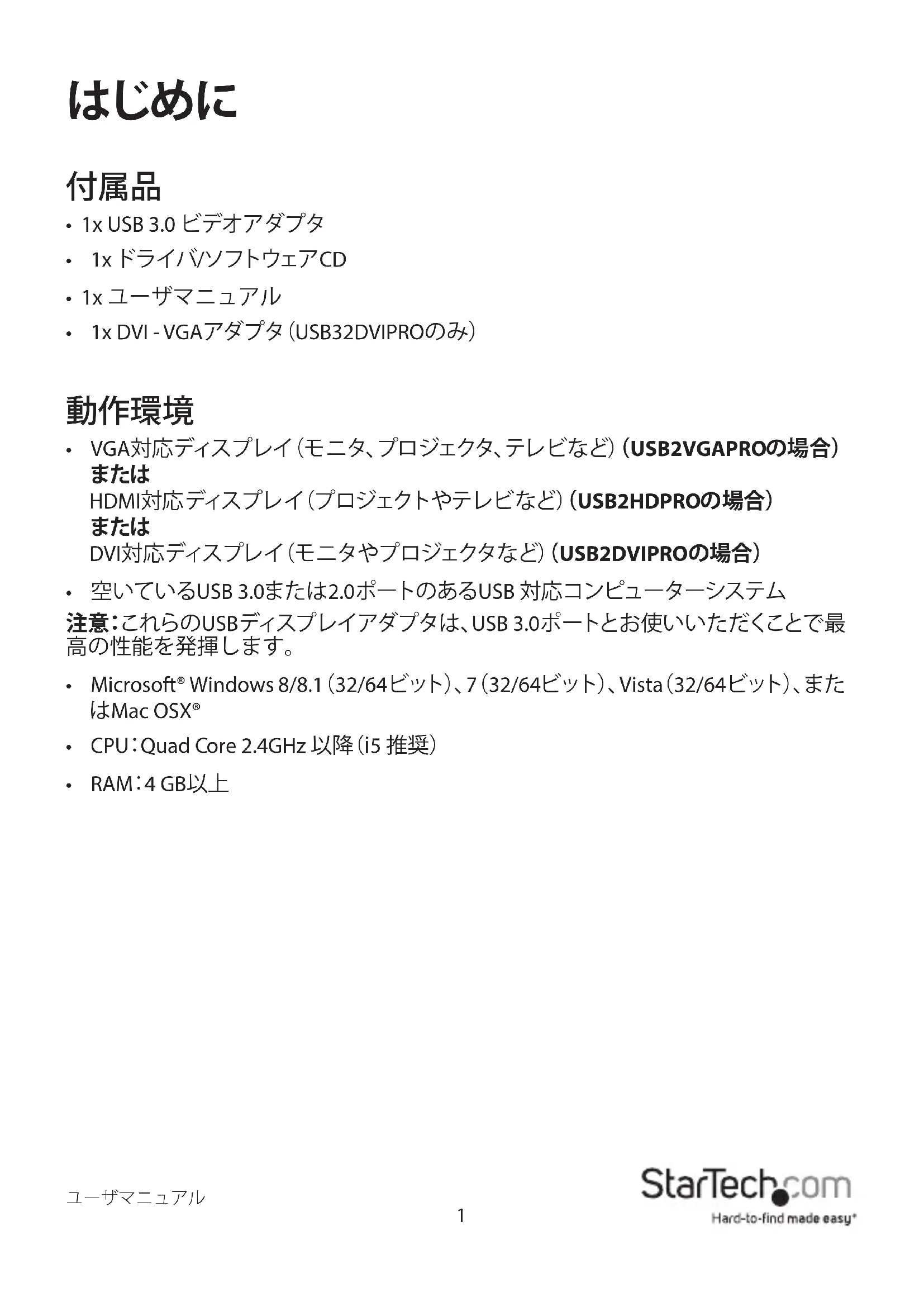 デバイスのマニュアルを無料で見つける USB32VGAPRO StarTech.com PDF形式.