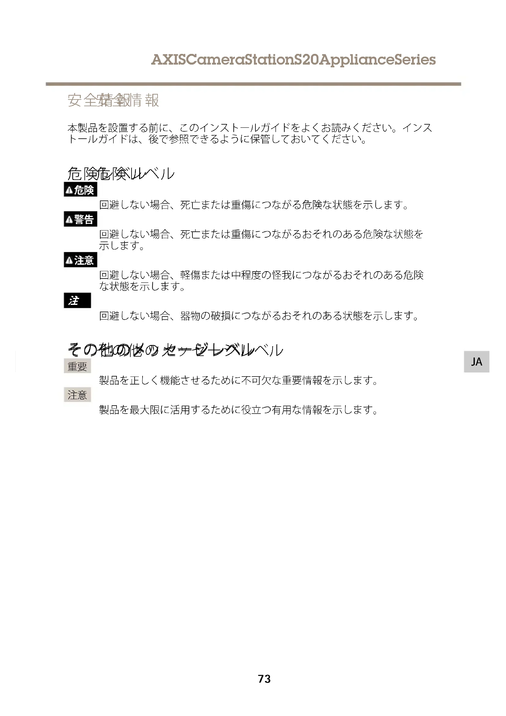 本書の当セクションの手順を開始する前に、安全情報をお読みください。詳細については、AxisのWebサイト(www.axis.com)をご覧ください。