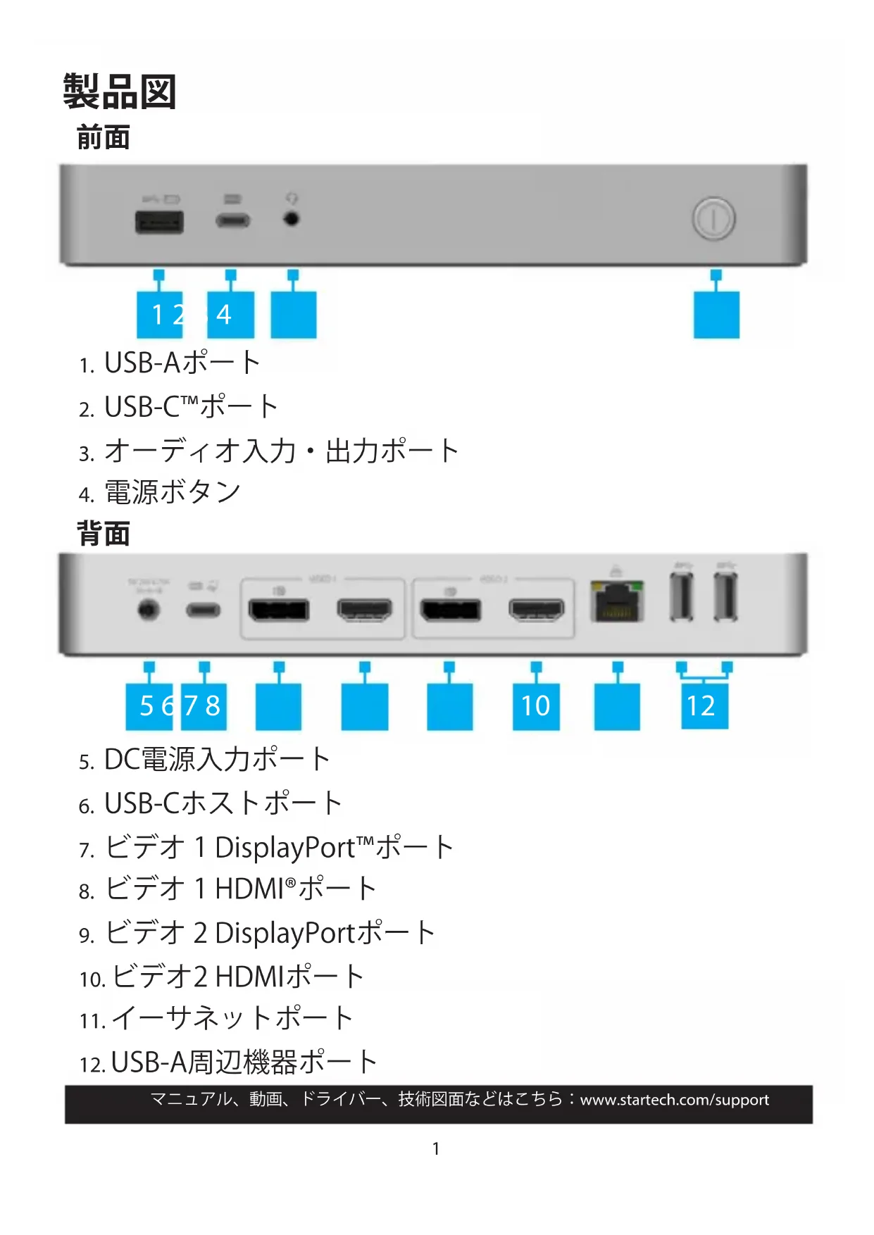マニュアル、動画、ドライロー、技術価面のははこら:www.startech.com/support