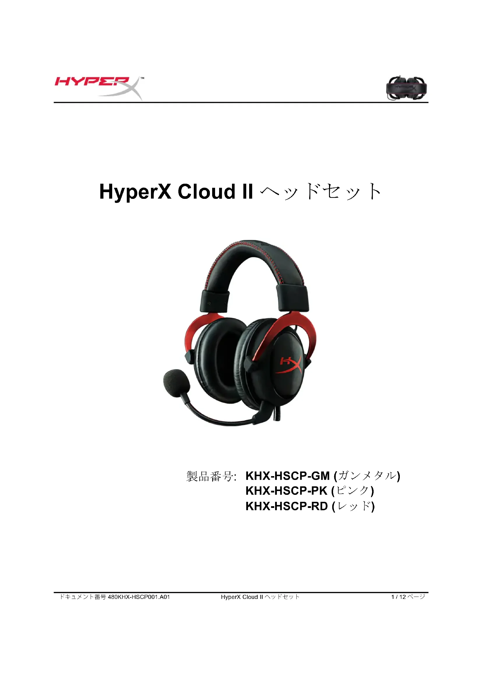 One との使用ドキュメント番号 480KHX-HSCP001.A01 HyperX Cloud II ヘッドセット 11 / 12 ページ