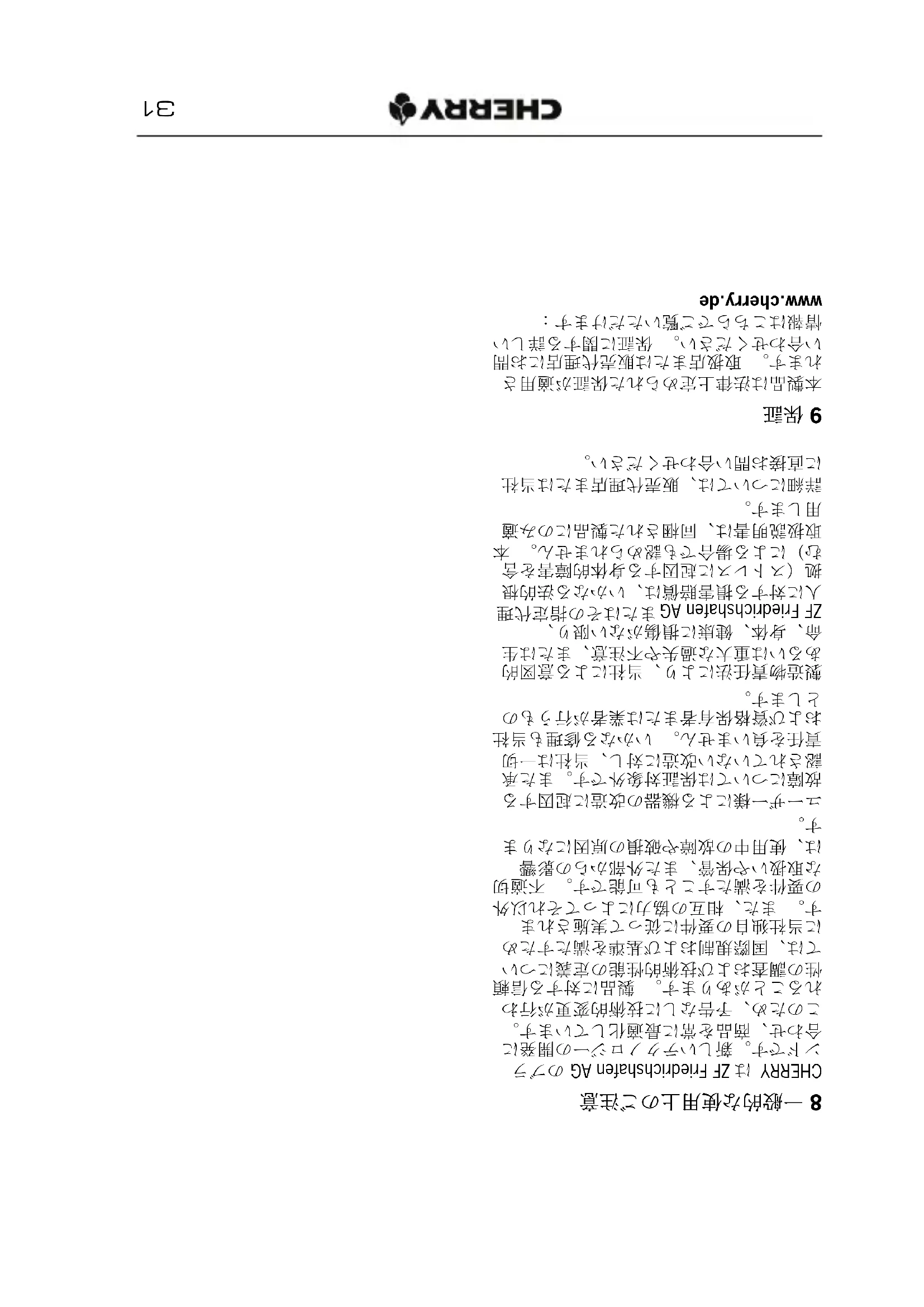 CHERRY MW 2100 // Wireless Mouse31 8 一般的な使用上のご注意 CHERRY は ZF Friedrichshafen AG