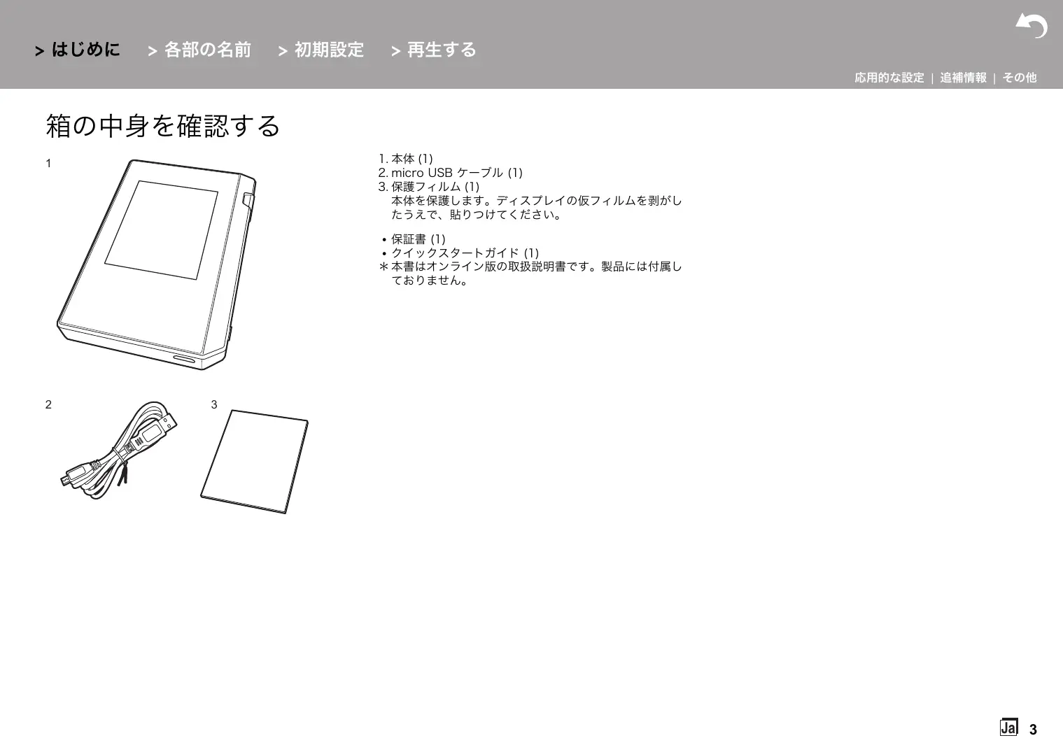 0 保証書 (1) 0 クイックスタートガイド (1) * 本書はオンライン版の取扱説明書です。製品には付属し