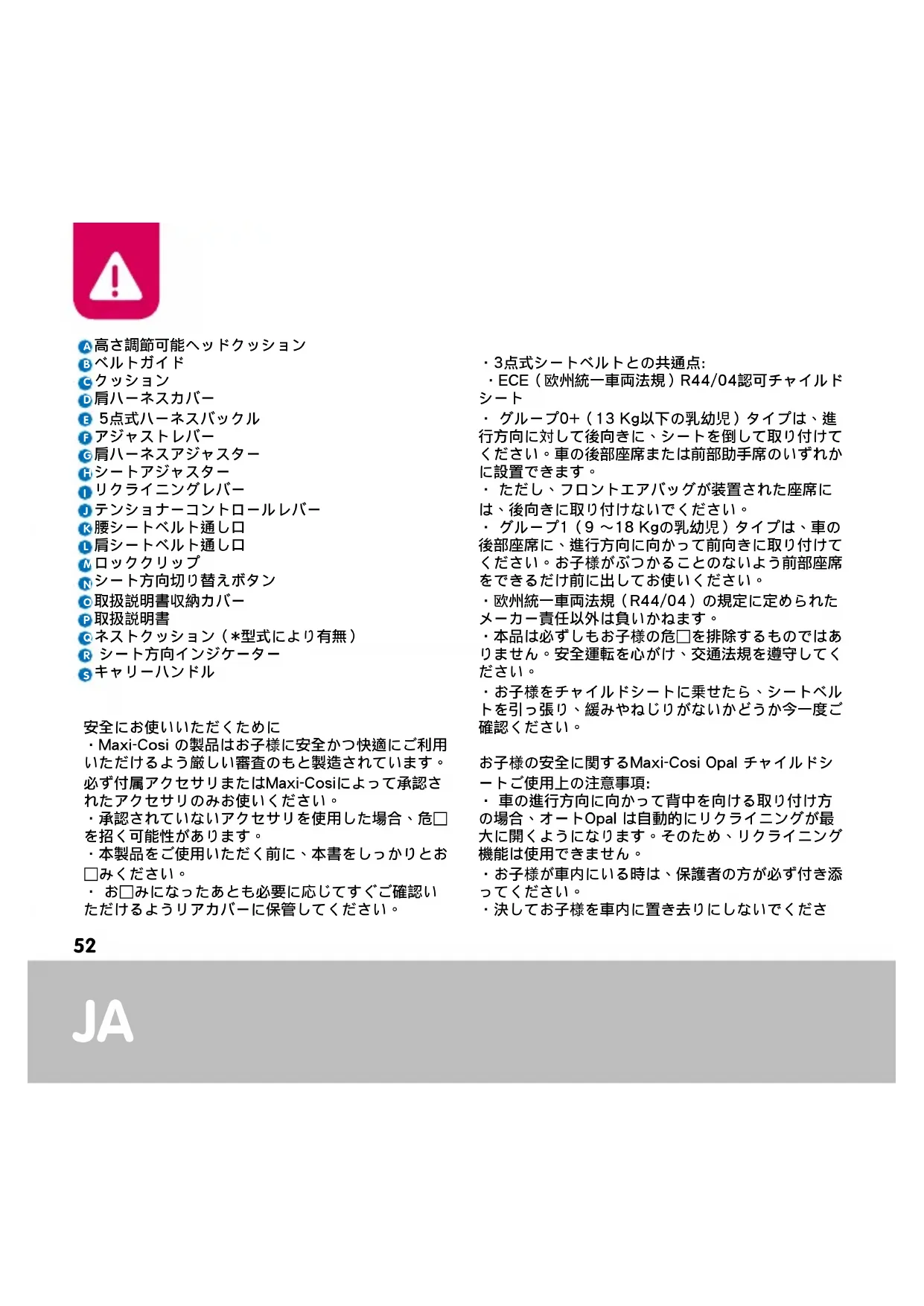 お子様の安全に関するMaxi-CosiOpalチャイルドシ ートご使用上の注意事項:
