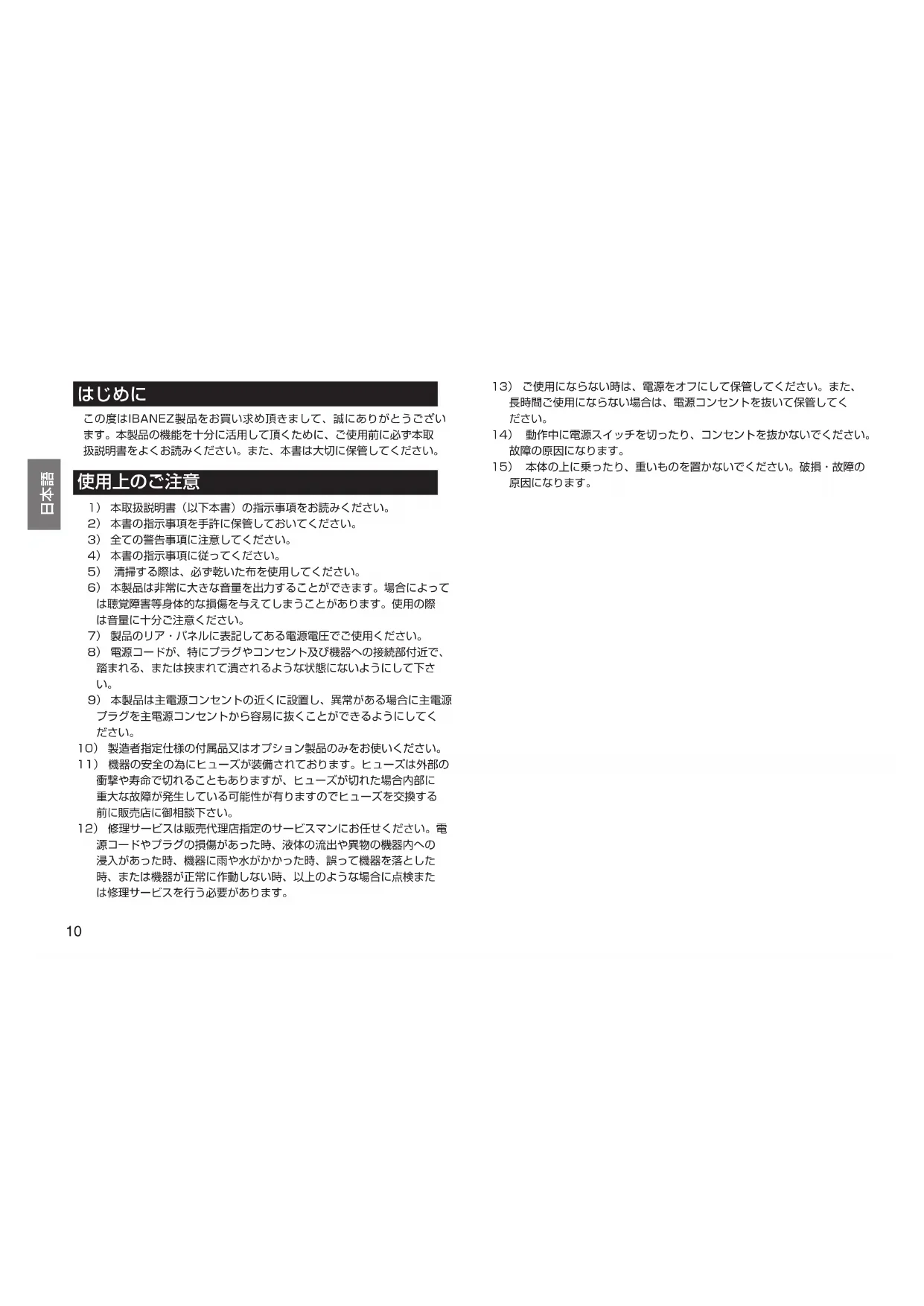 この度はIBANEZ製品をお買い求め頂きまして、誠にありがとうござい ます。本製品の機能を十分に活用して頂くために、ご使用前に必ず本取 扱説明書をよくお読みください。また、本書は大切に保管してください。