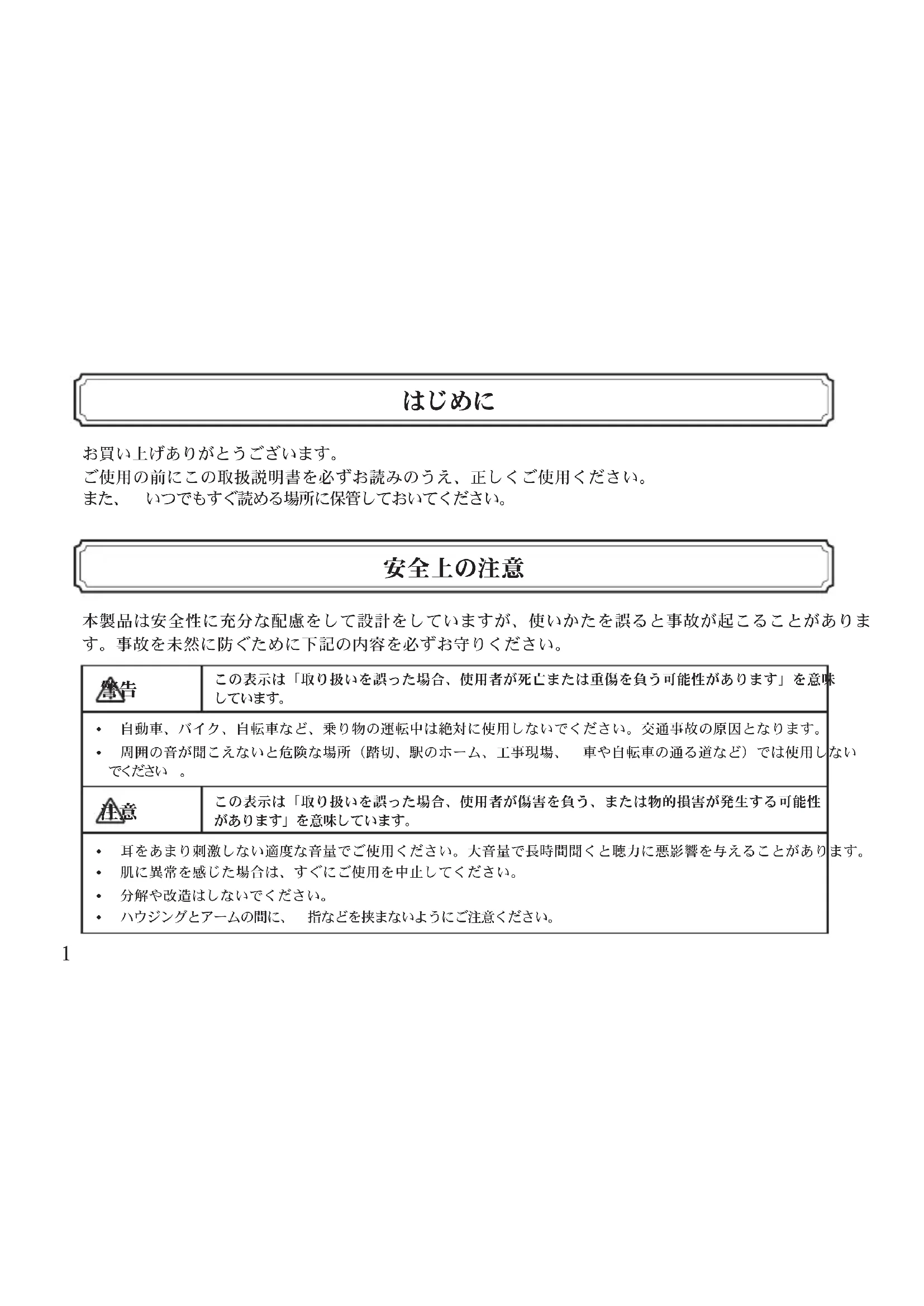 | • 耳をあら冲刺しお適度な音量でご使用:<だてき。大音量で長時間聞くと聾力に恶影響を与える这句话のはんだ • 肌に異常を感じた场合は、すにご使用を中止して:<だてき。 • 分解和改造はしおいで:<だてき。 • ヒウジングとアムの間に、指各種を挟まないようにご注意:<だてき。 | |