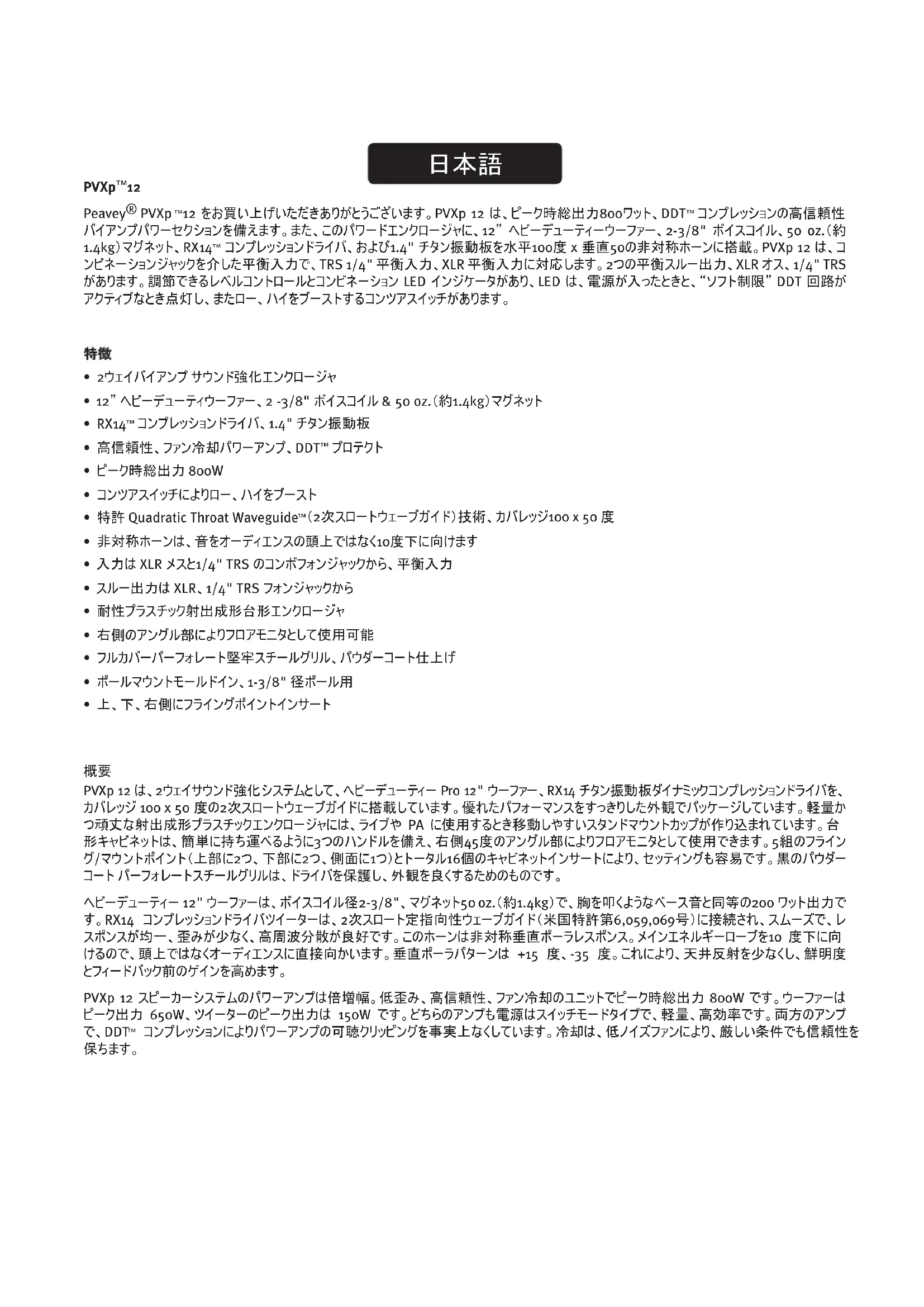 12 をお買い上げいただきありがとうございます。PVXp 12 は、ピーク時総出力800ワット、DDT