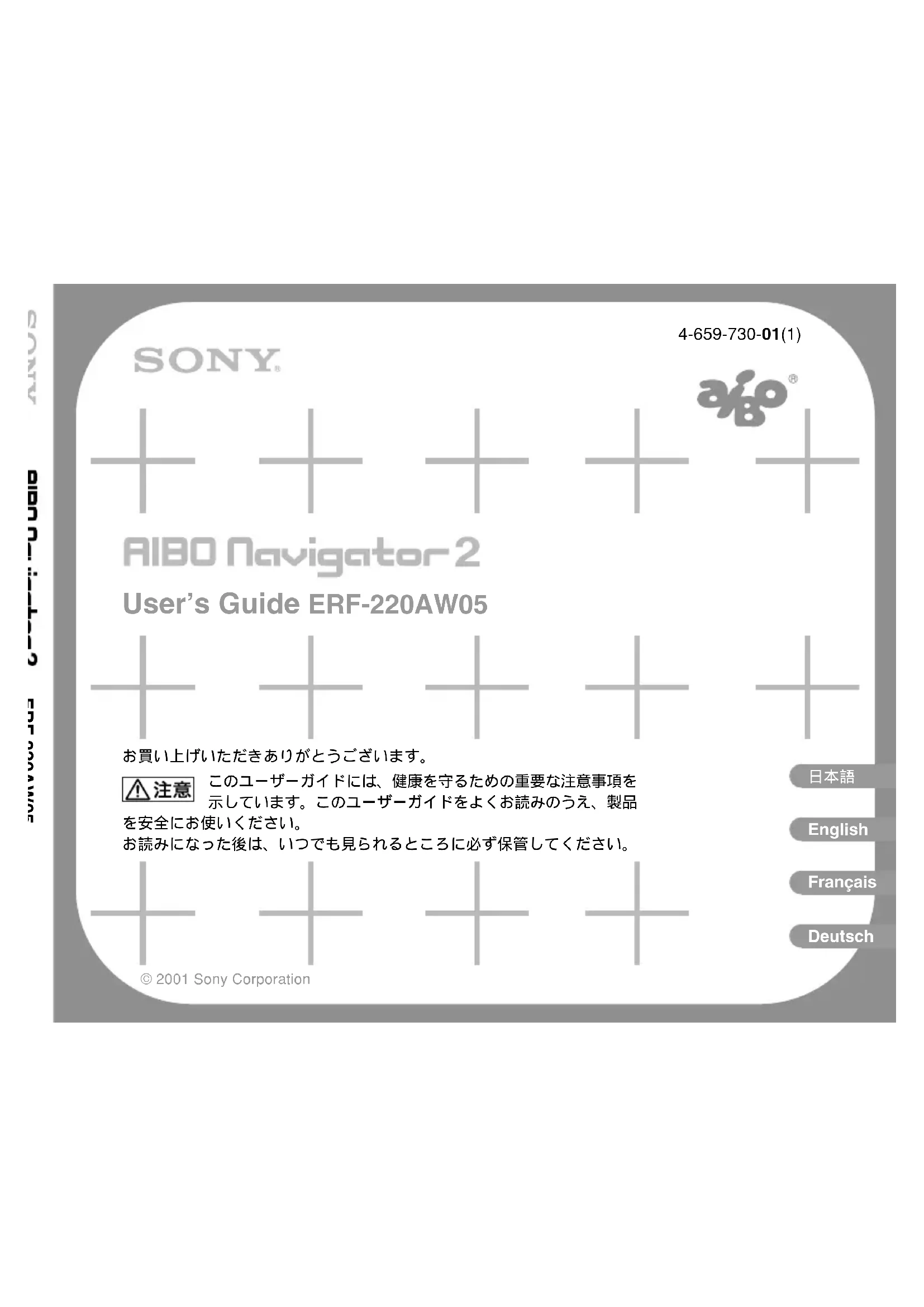 ERF 220AW05 © 2001 Sony Corporation 4-659-730-01(1) User’s Guide ERF-220AW05 お買い上げいただきありがとうございます。 このユーザーガイドには、健康を守るための重要な注意事項を 示しています。このユーザーガイドをよくお読みのうえ、製品 を安全にお使いください。 お読みになった後は、いつでも見られるところに必ず保管してください。