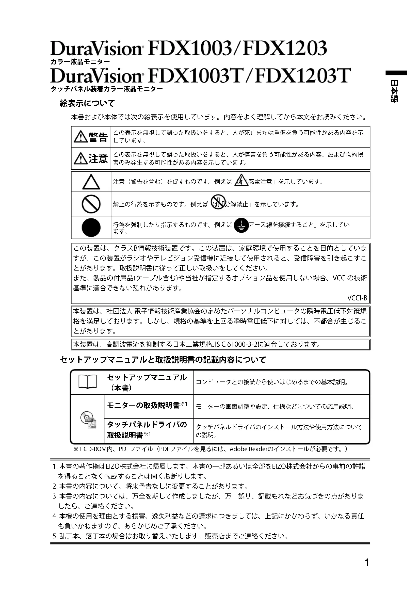 使用説明書 DuraVision FDX1003 EIZO