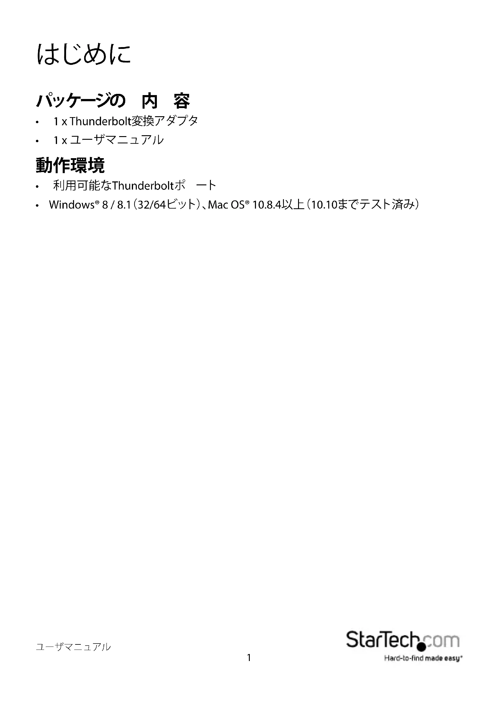 StarTech.comの永久無料技術サポートは、当社が業界屈指のソリューションを提供す るという企業理念において不可欠な部分を構成しています。お使いの製品について ヘルプが必要な場合は、www.startech.com/supportまでアクセスしてください。当 社 では、お客様をサポートするためにオンライン工具、マニュアル、ダウンロード可能資 料をご用意しています。 ドライバやソフトウェアに関する最新情報はwww.startech.com/downloadsでご確