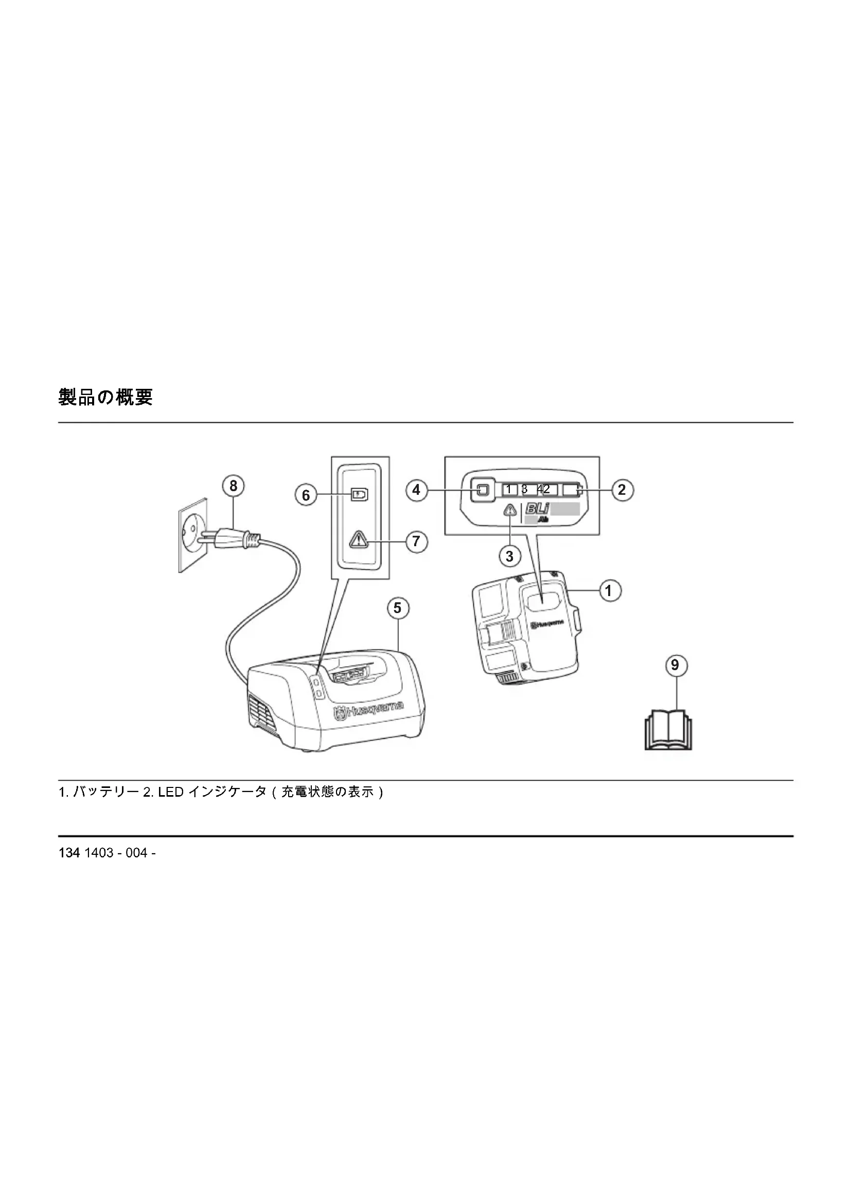 138 1403 - 004 -• バッテリー充電器は子供が近づ けない場所に保管してくださ