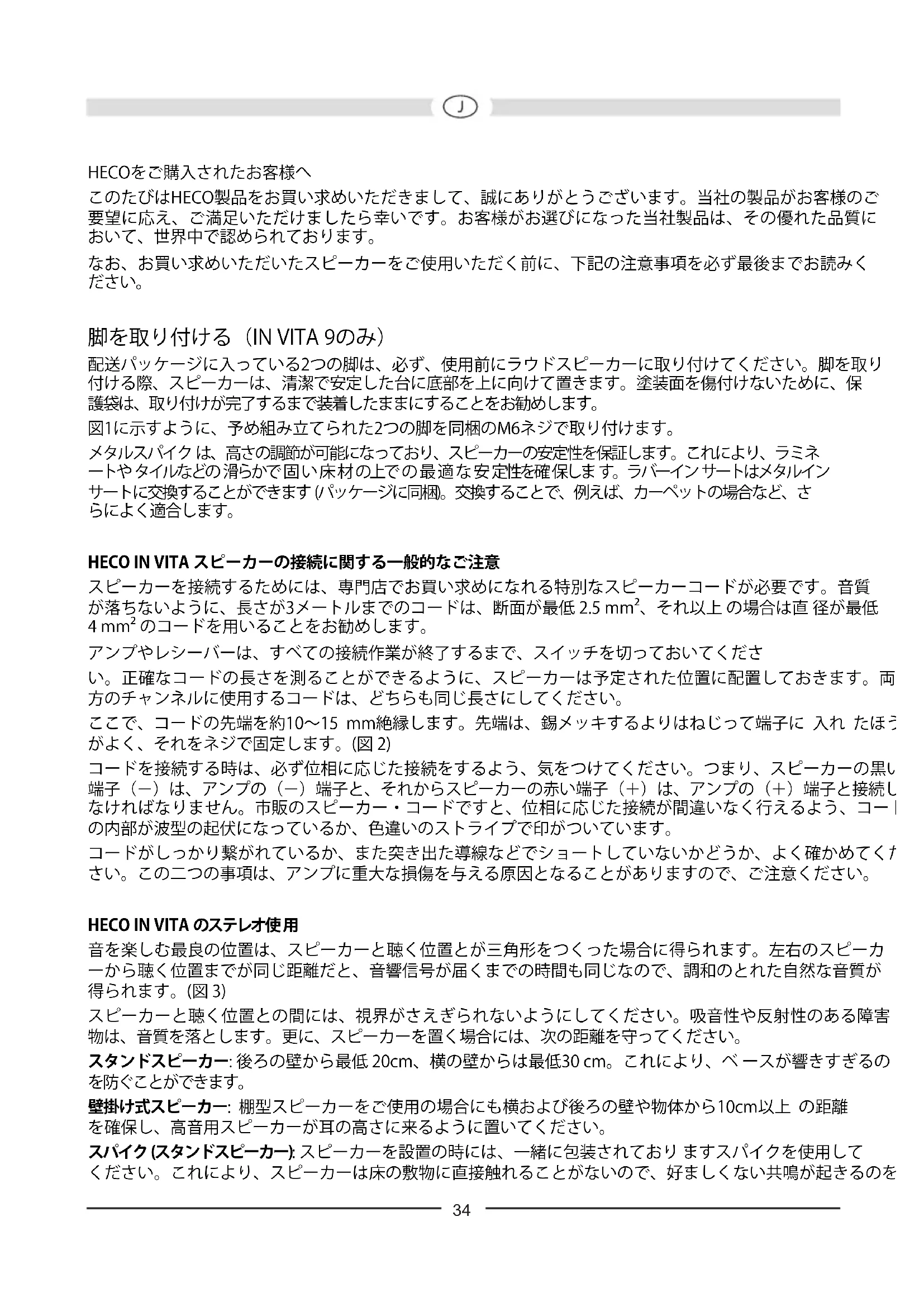 HECOをご購入されたお客様へ このたびはHECO製品をお買い求めいただきまして、誠にありがとうございます。当社の製品がお客様のご 要望に応え、ご満足いただけましたら幸いです。お客様がお選びになった当社製品は、その優れた品質に おいて、世界中で認められております。 なお、お買い求めいただいたスピーカーをご使用いただく前に、下記の注意事項を必ず最後までお読みく