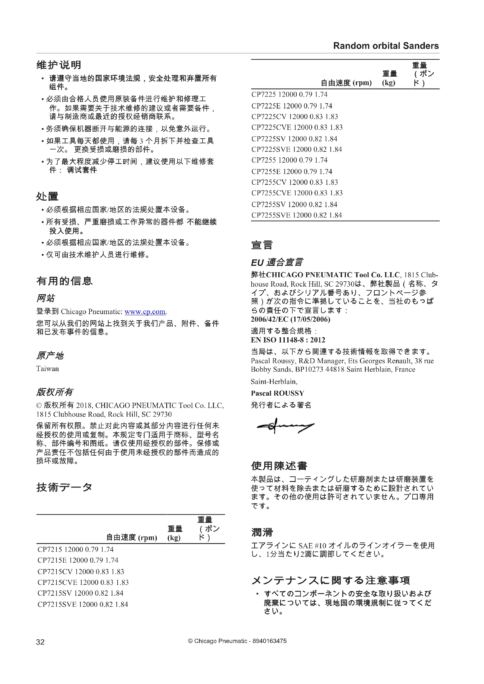 デバイスのマニュアルを無料で見つける CP7215 Chicago Pneumatic PDF形式.