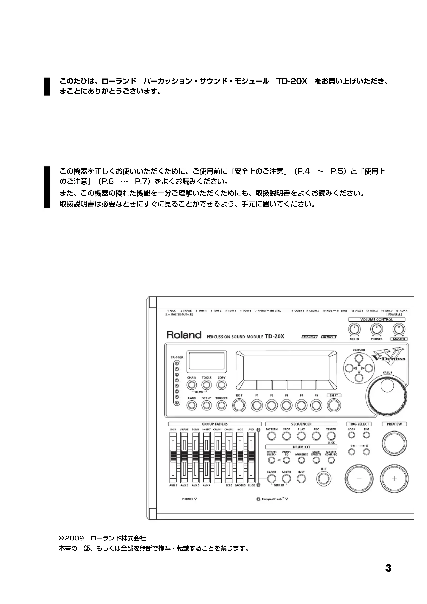 2009 ローランド株式会社 本書の一部、もしくは全部を無断で複写・転載することを禁じます。 TD-20X_j.book 3 ページ 2009年6月8日 月曜日 午後4時8分4