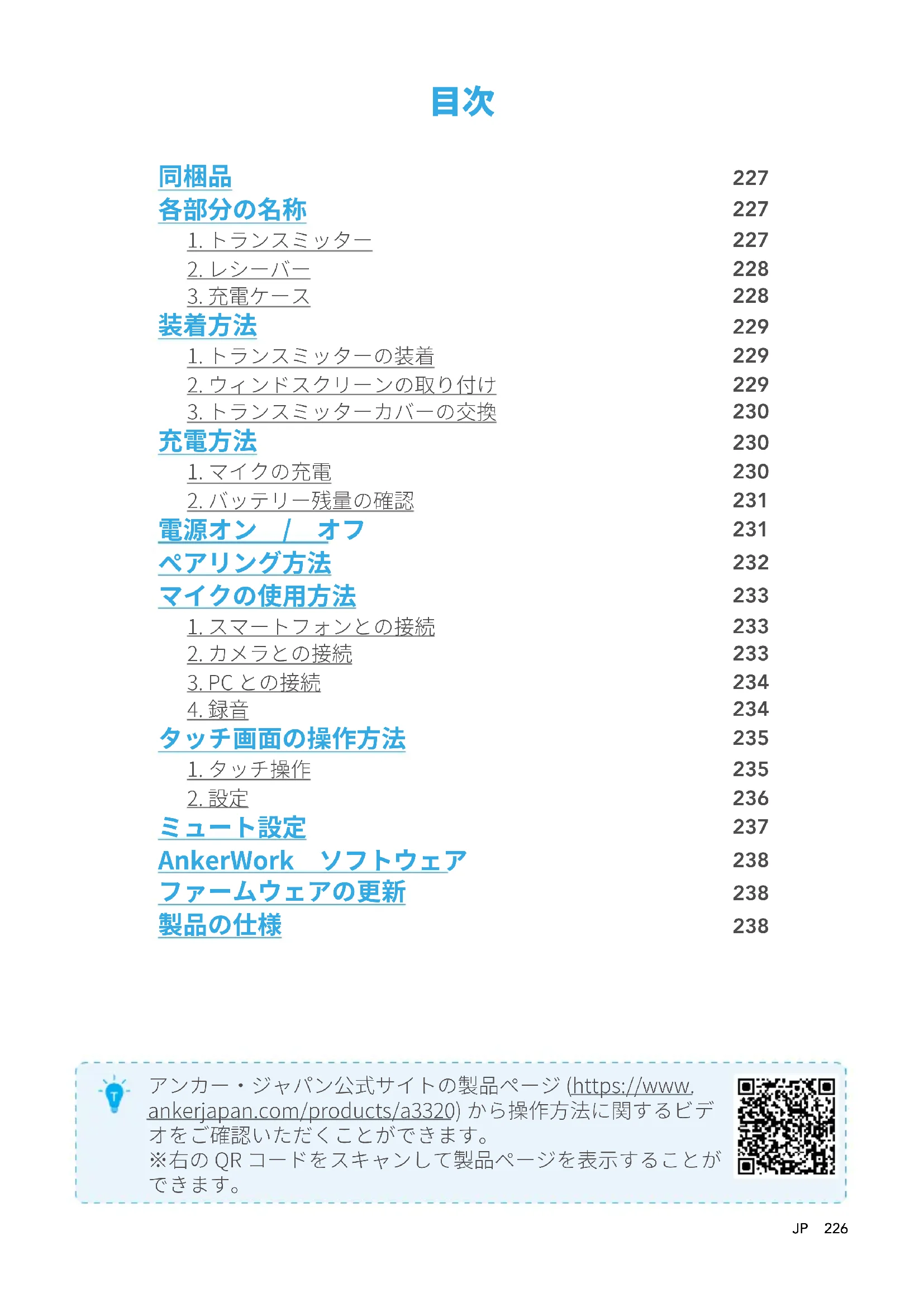 アンカー・ジャパン公式サイトの製品ページ (https://www. ankerjapan.com/products/a3320) から操作方法に関するビデ オをご確認いただくことができます。 ※右の QR コードをスキャンして製品ページを表示することが