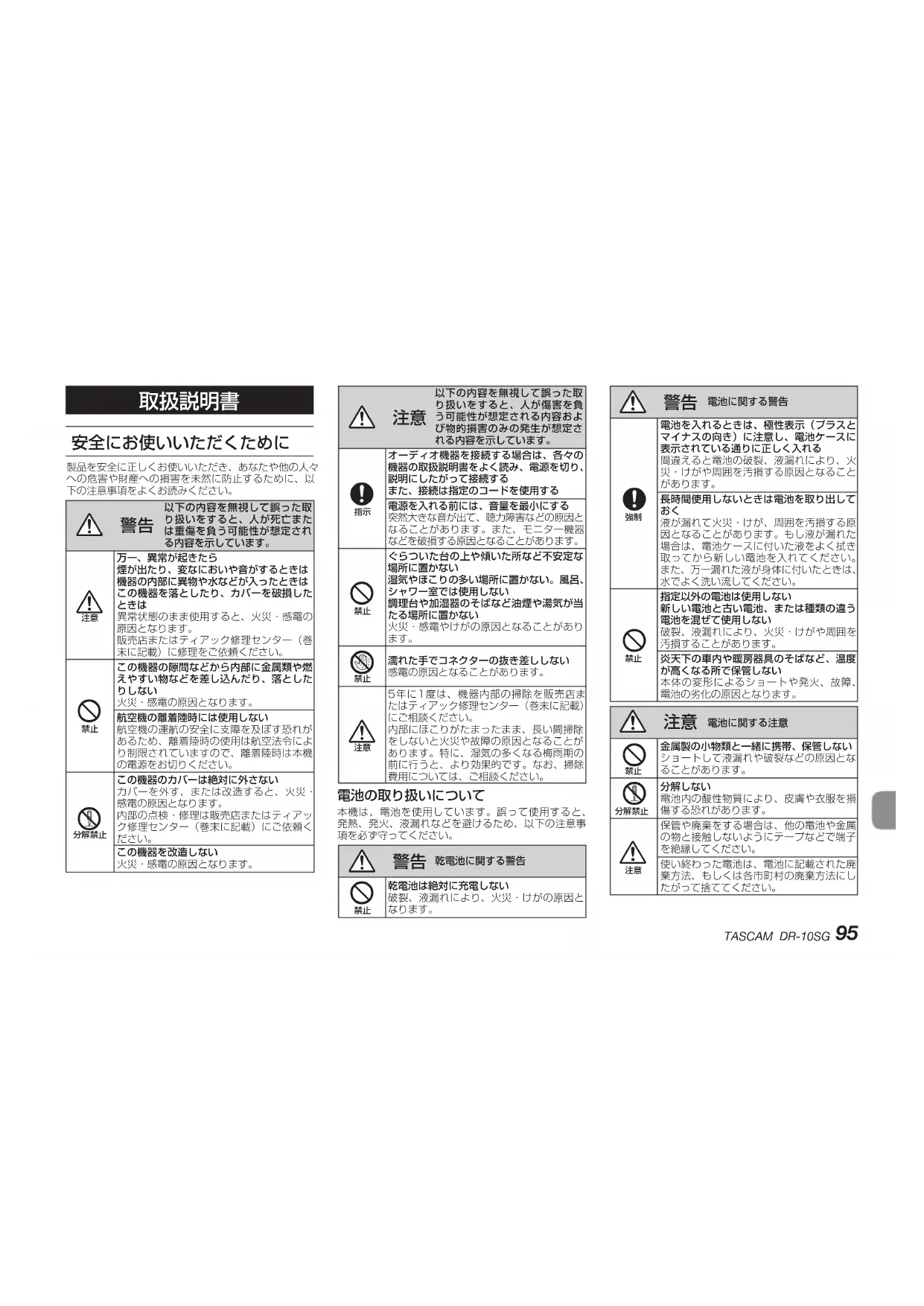 デバイスのマニュアルを無料で見つける DR10SG TASCAM PDF形式.