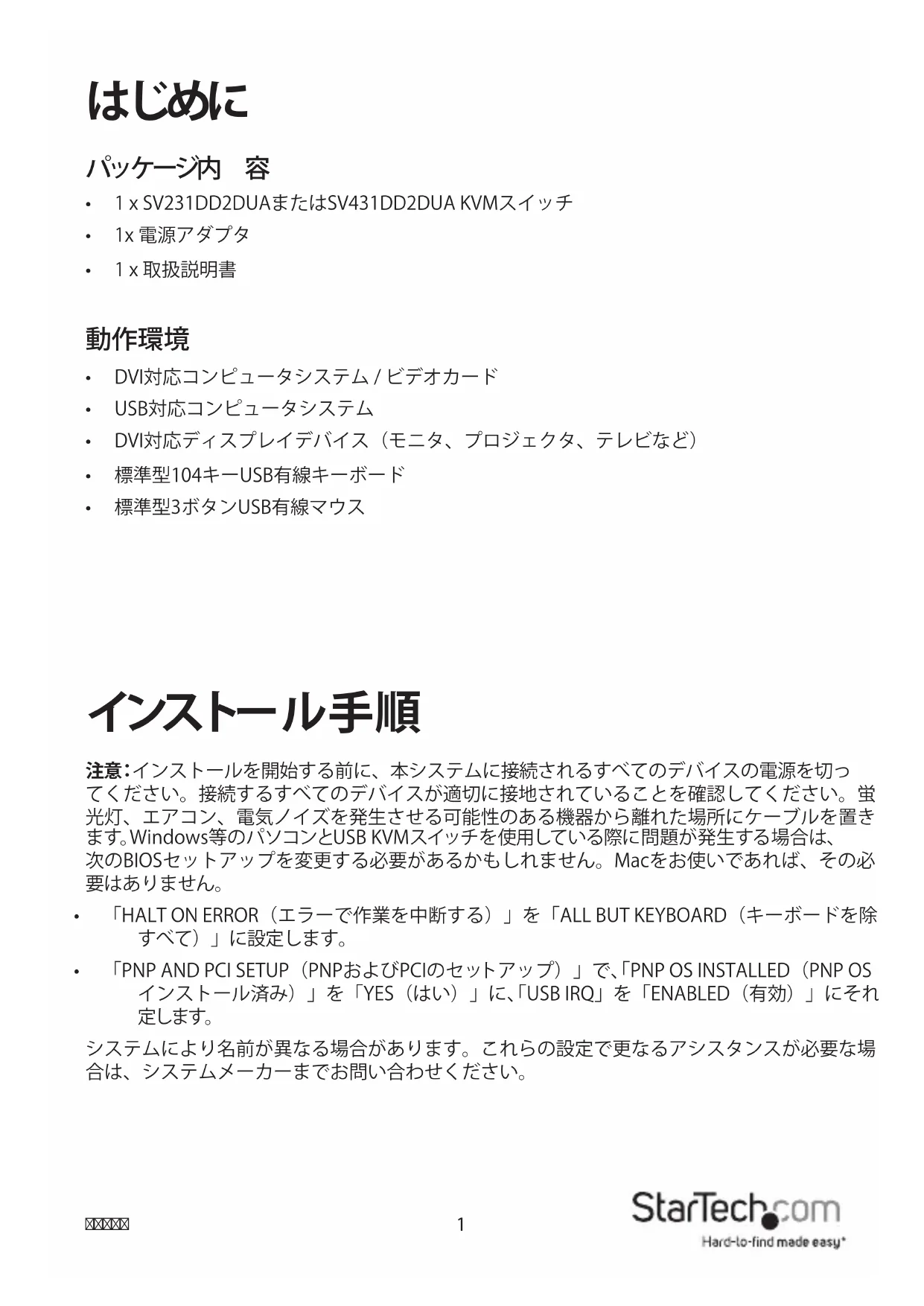 デバイスのマニュアルを無料で見つける SV231DD2DUA StarTech.com PDF形式.