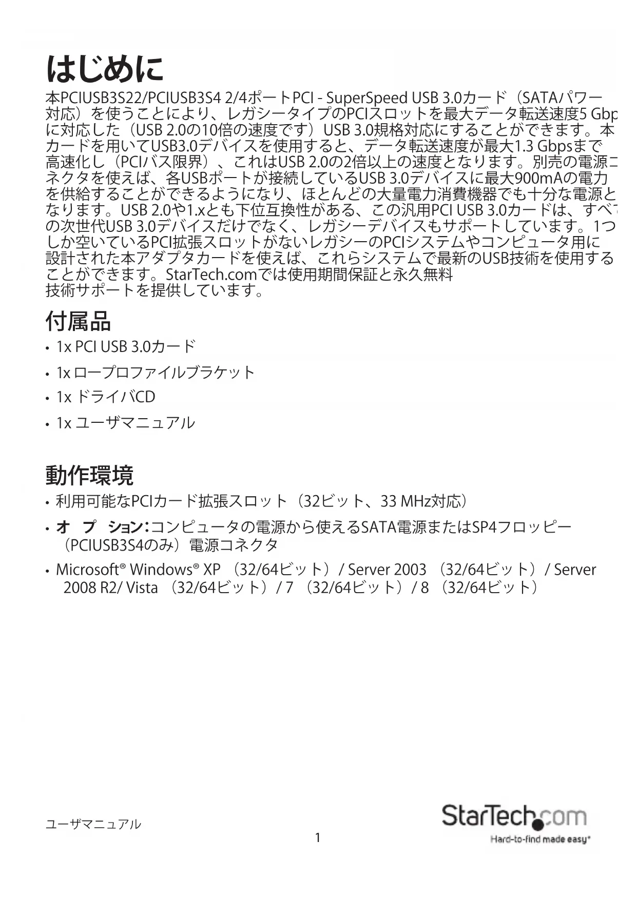 使用説明書 PCIUSB3S4 StarTech.com