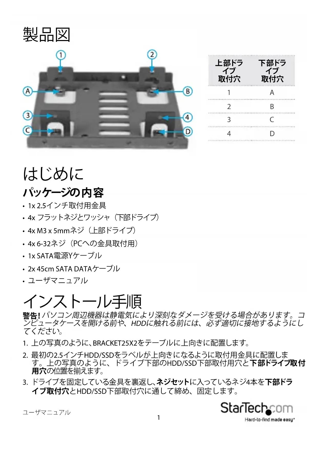 BRACKET25X2 - 外付けハードドライブ StarTech.com - 無料のユーザーマニュアル