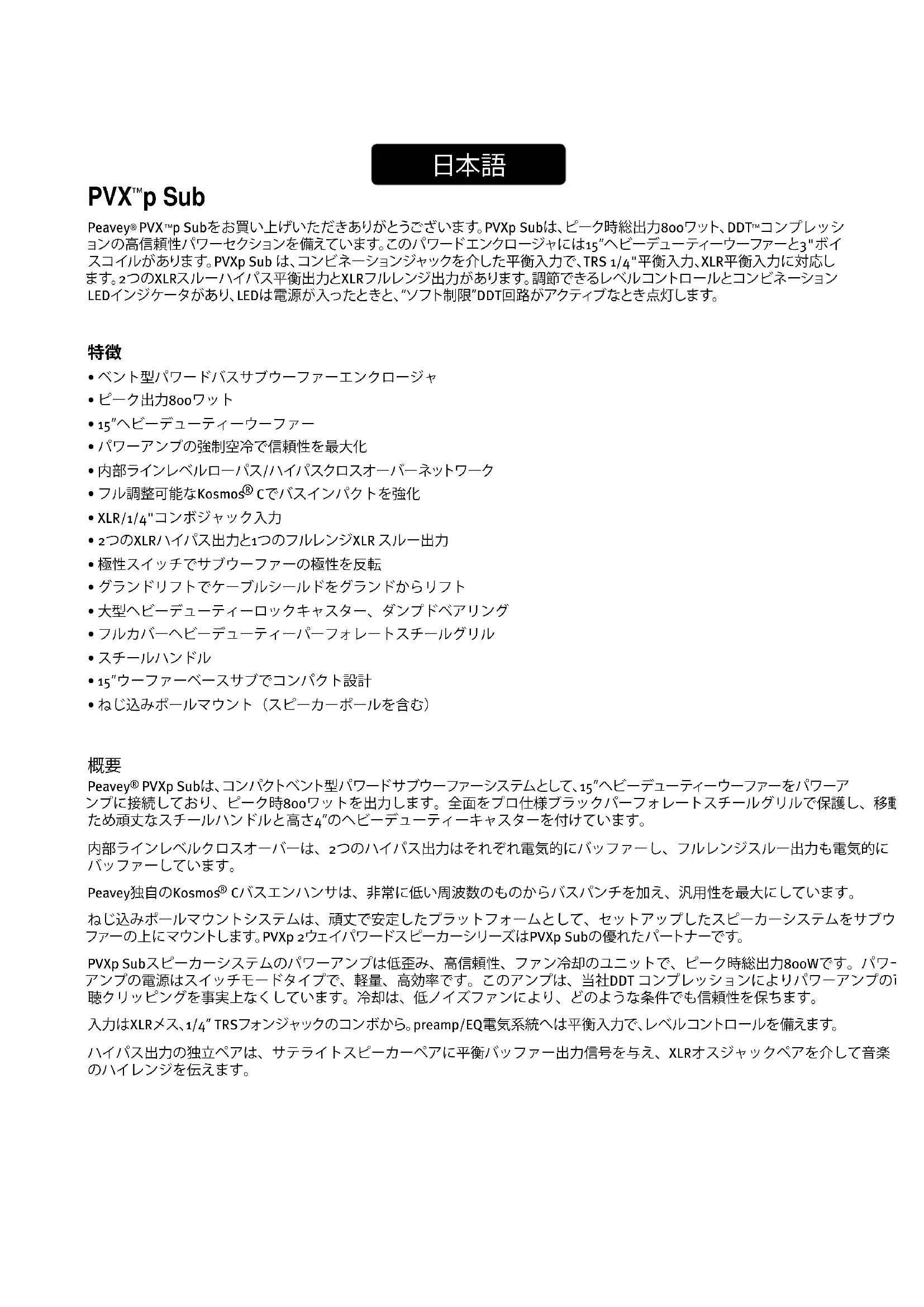 PVXp Sub - サブウーファー PEAVEY - 無料のユーザーマニュアル