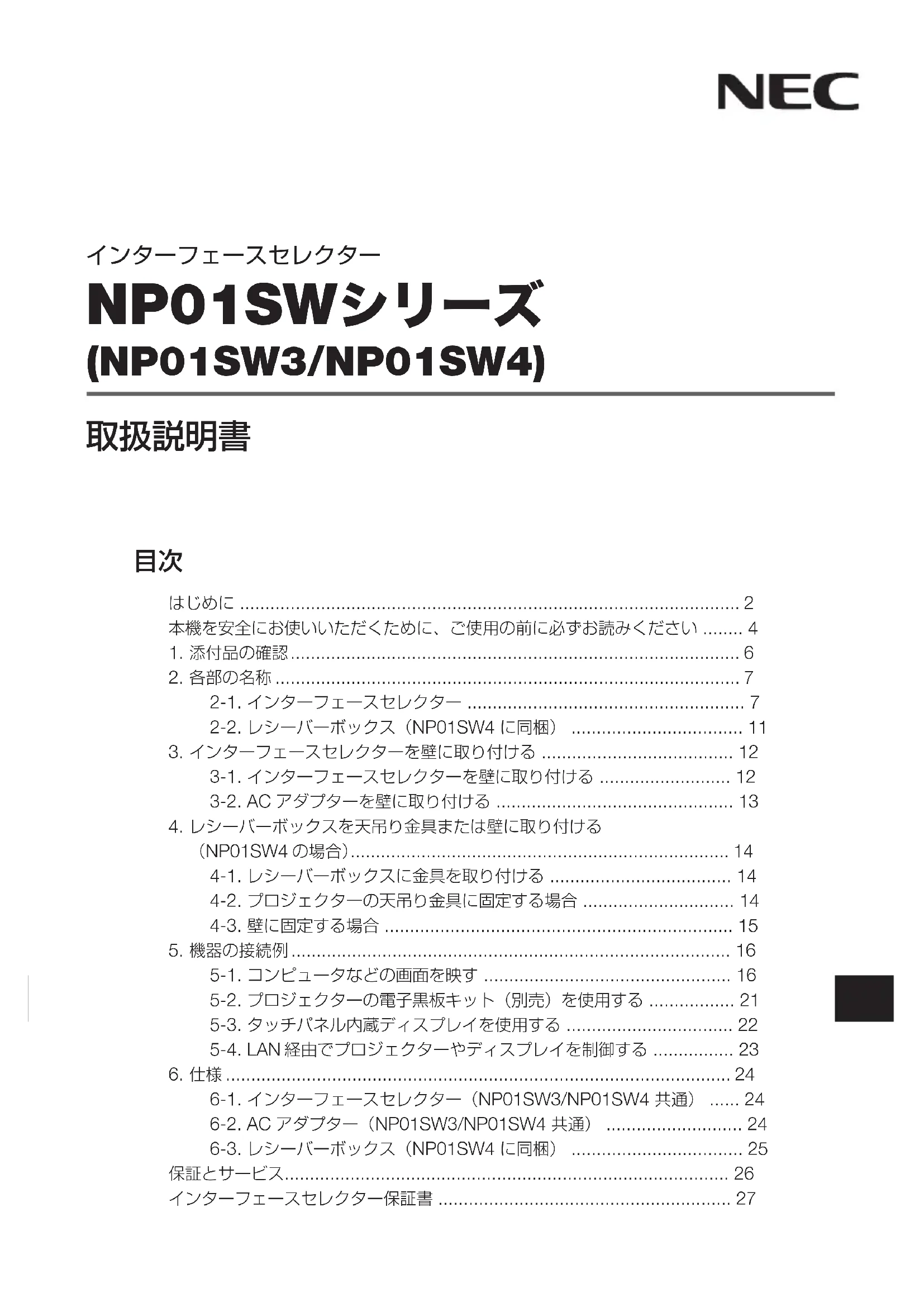 - 2-2. レシーバーボックス(NP01SW4 に同梱) p. 11