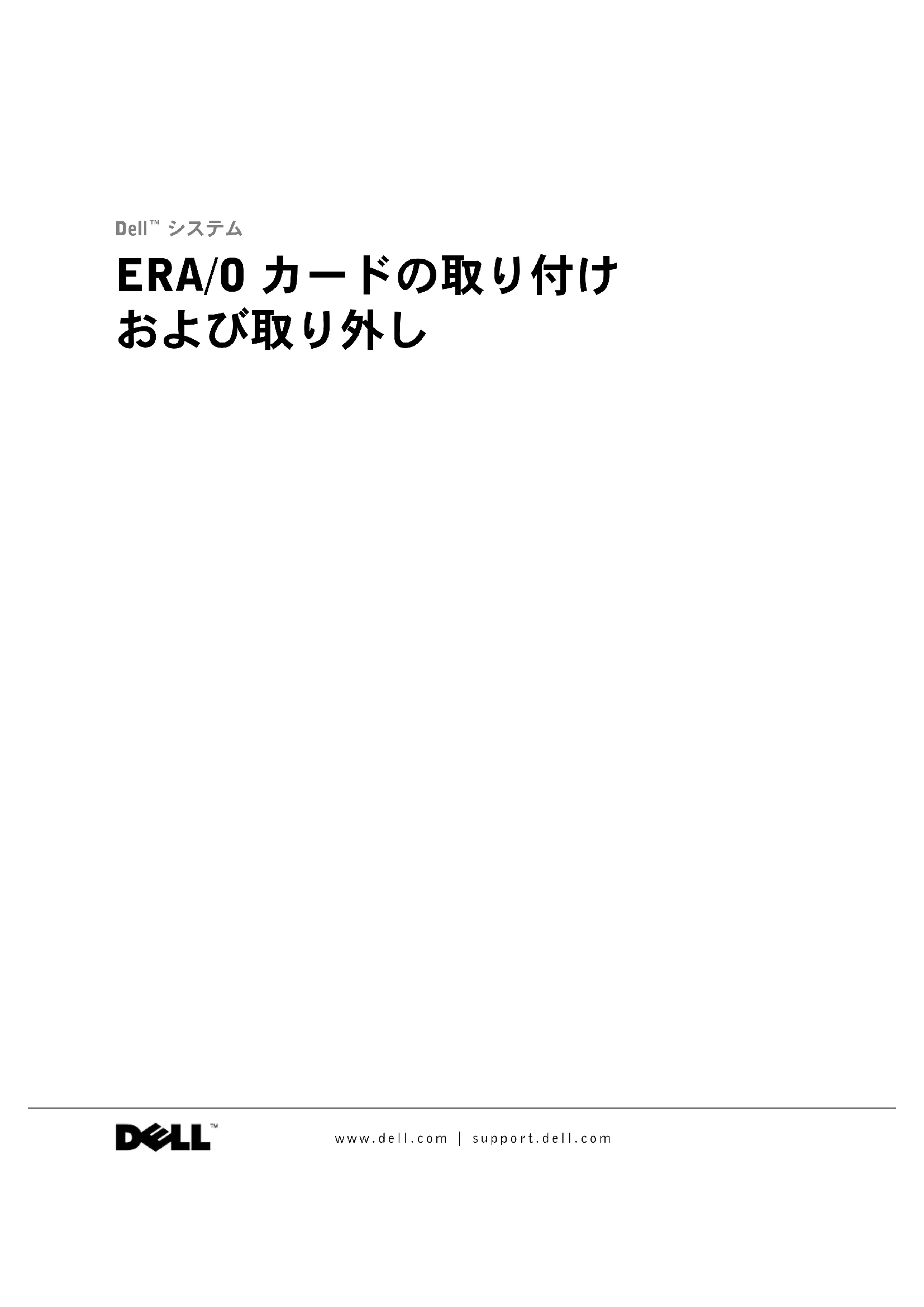 本書では、必要に応じて上記記載以外の商標および会社名が使用されている場合がありますが、これらの商 標や会社名は、一切 Dell Computer Corporation に所属するものではありません。 2003 年 2 月 P/N K0238 Rev. A00 K0238jbk.book Page 2 Monday, February 24, 2003 3:02 PMERA/O カードの取り付けおよび取り外し 5-1 本書では、お使いのシステムの Embedded Remote Access Option