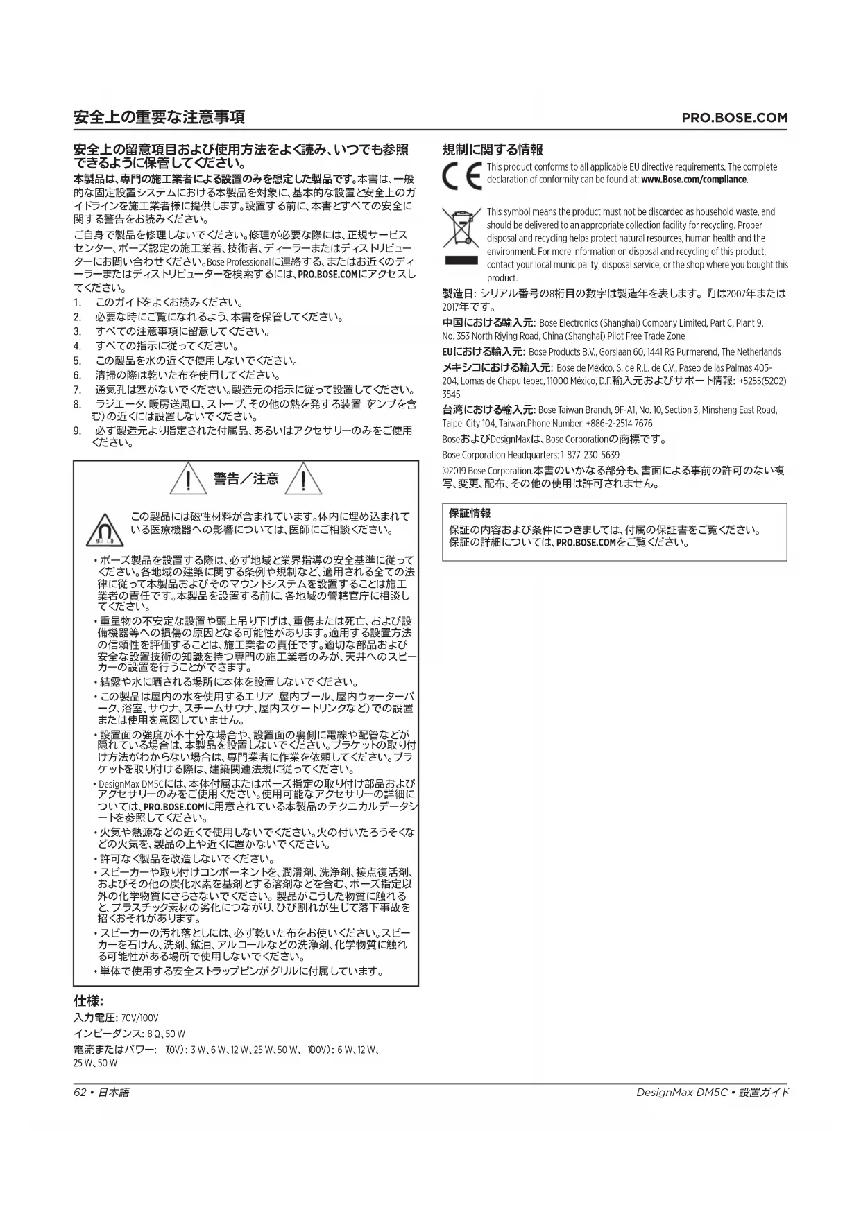 保証の詳細については、PRO.BOSE.COMをご覧ください。