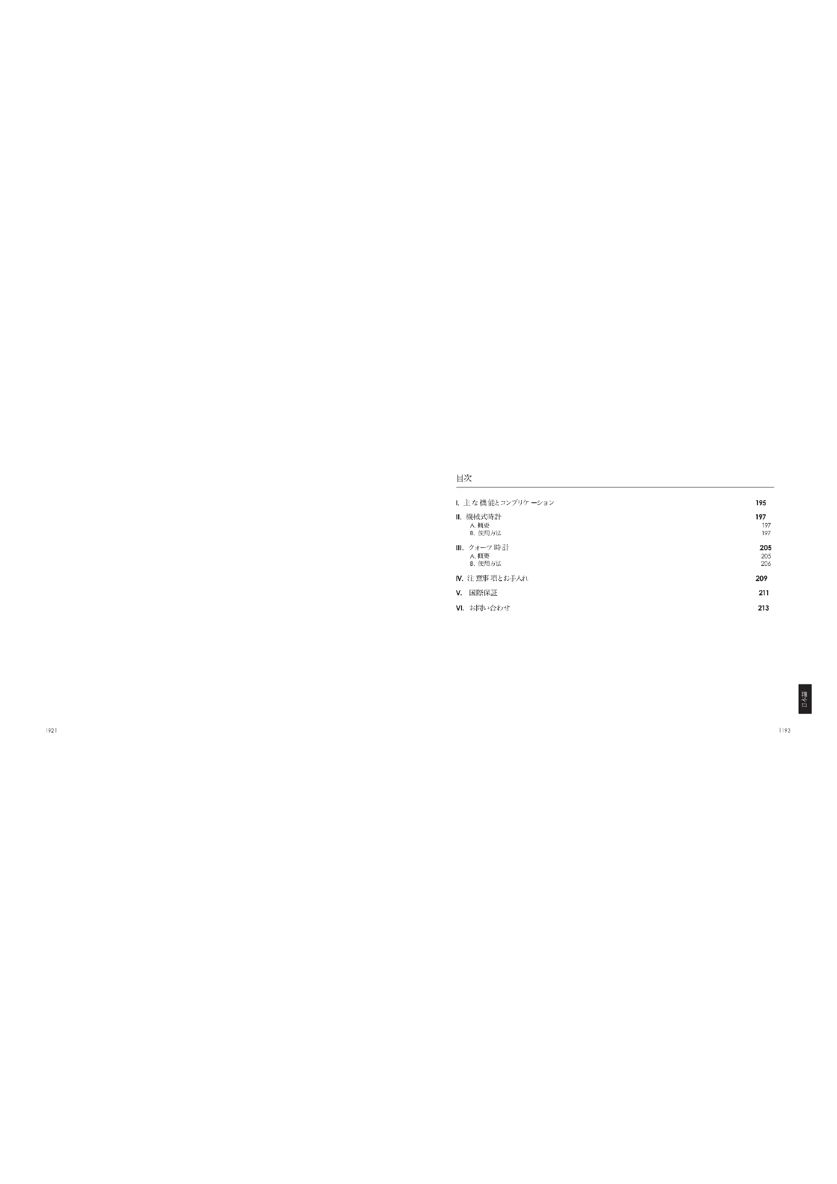 注 意:リュ ー ズ の 巻 き 過 ぎ に ご 注 意 く だ さ い 。ム ー ブ メ ン ト に 損 傷 を与えることがあります。 リューズ位 置 1:時 計 回りにリューズを回します。 リューズが止まったら巻き上げ終了です。198
