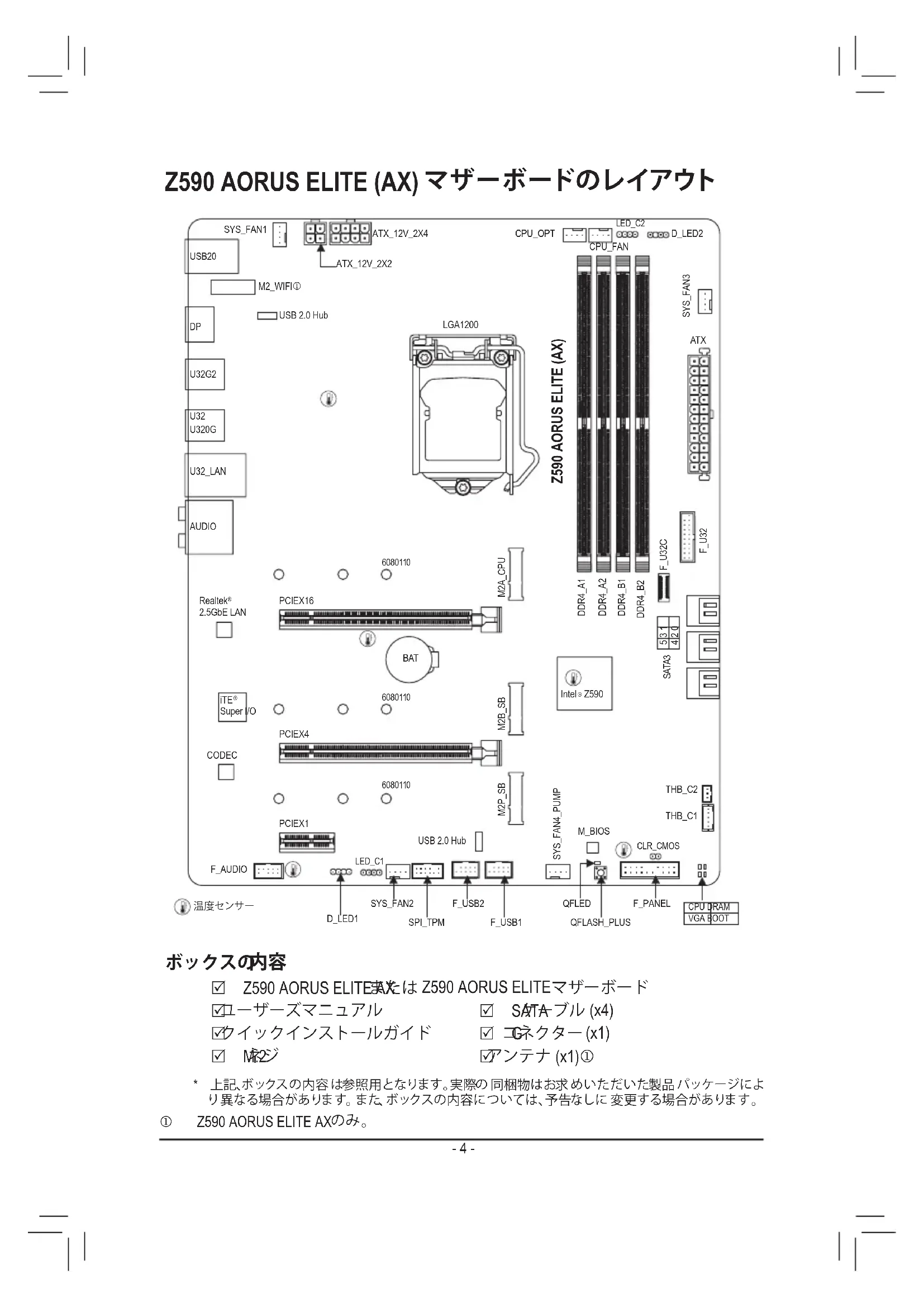Z590 AORUS ELITE (AX) マザーボードのレイアウト