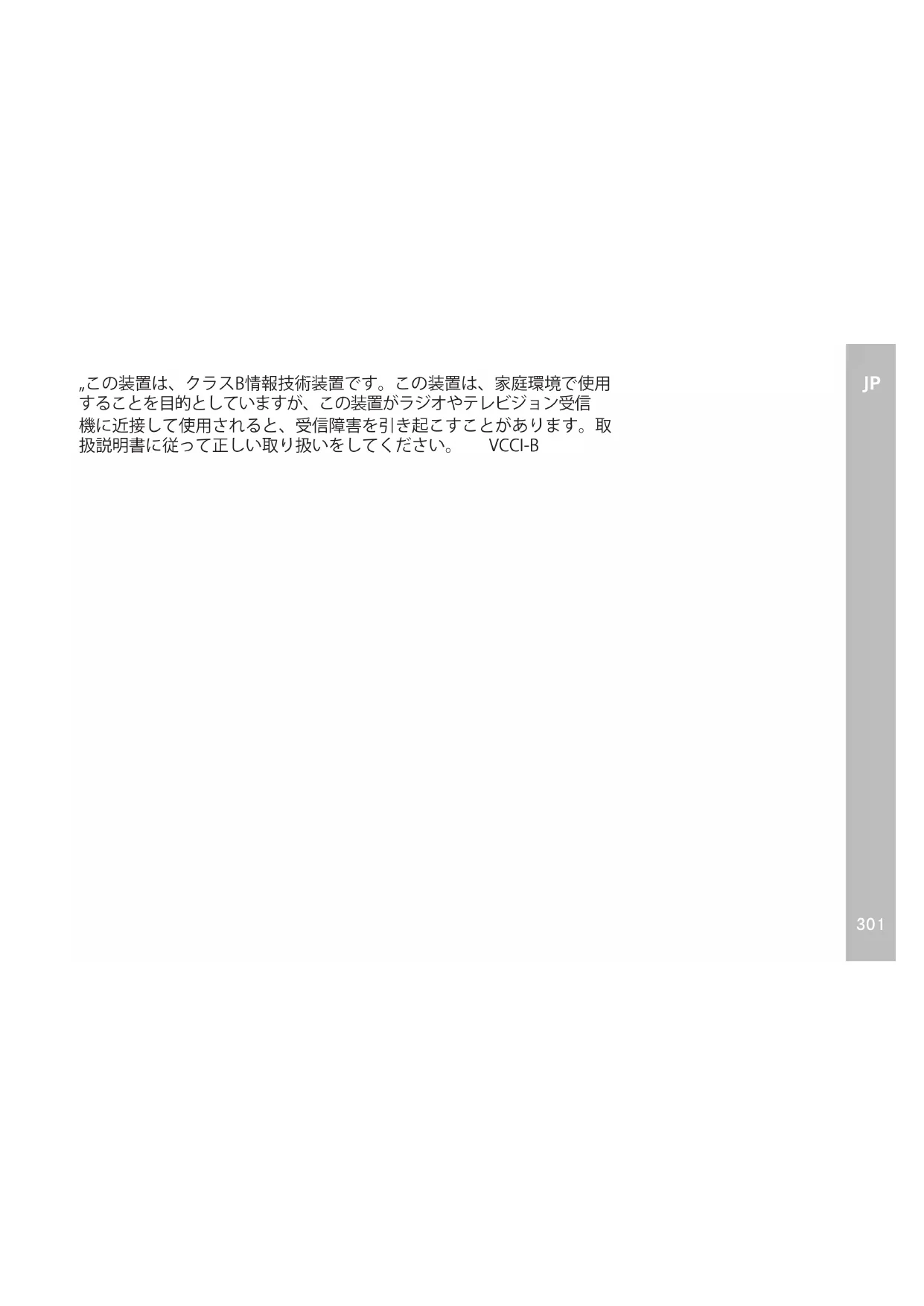 „この装置は、クラスB情報技術装置です。この装置は、家庭環境で使用 することを目的としていますが、この装置がラジオやテレビジョン受信 機に近接して使用されると、受信障害を引き起こすことがあります。取 扱説明書に従って正しい取り扱いをしてください。 VCCI-BJP
