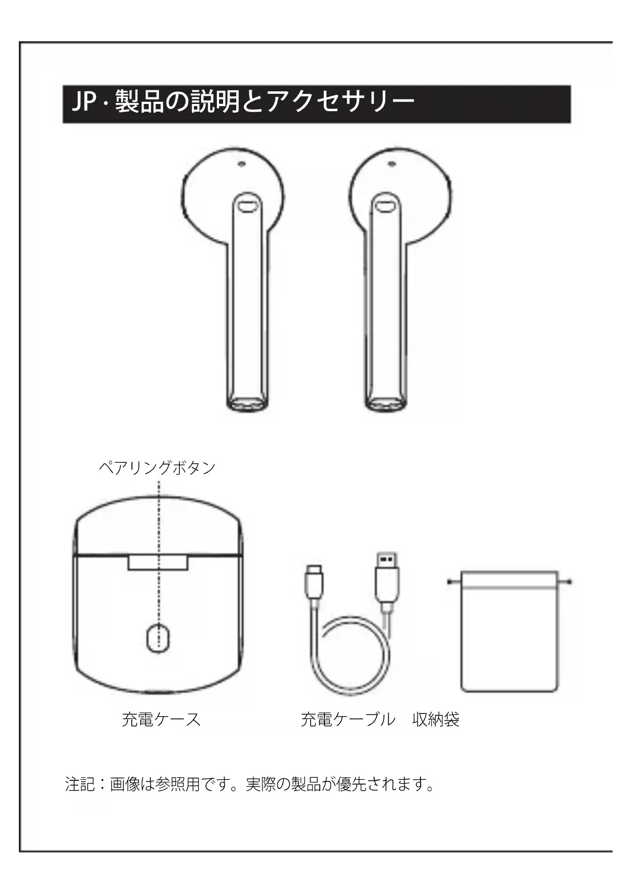 イヤフォンをケースに入れ、ペアリ ングボタンを2回押して、Bluetooth ペアリングを開始します。●