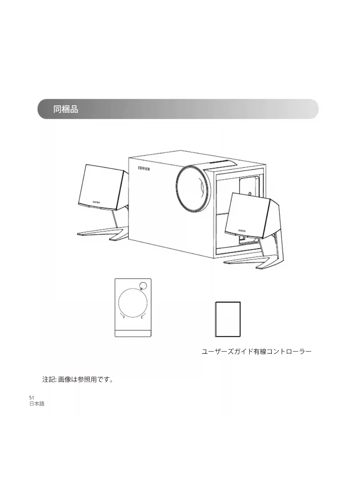 - EDIFIERスピーカーは、オーディオデバイスのバックグラウンドノイズが大きすぎる時、ノイズを少 し発生します。オーディオケーブルを外し、ボリュームを上げてください。スピーカーから1メートル 離れて音が聞こえない場合、本製品には問題ありません。 EDIFIERについて詳しくはwww.edifier.comをご覧ください EDIFIERの保証については、www.edifier.comの関連ページを参照し、保証条件(WarrantyTerms) というセクションをご覧ください。57