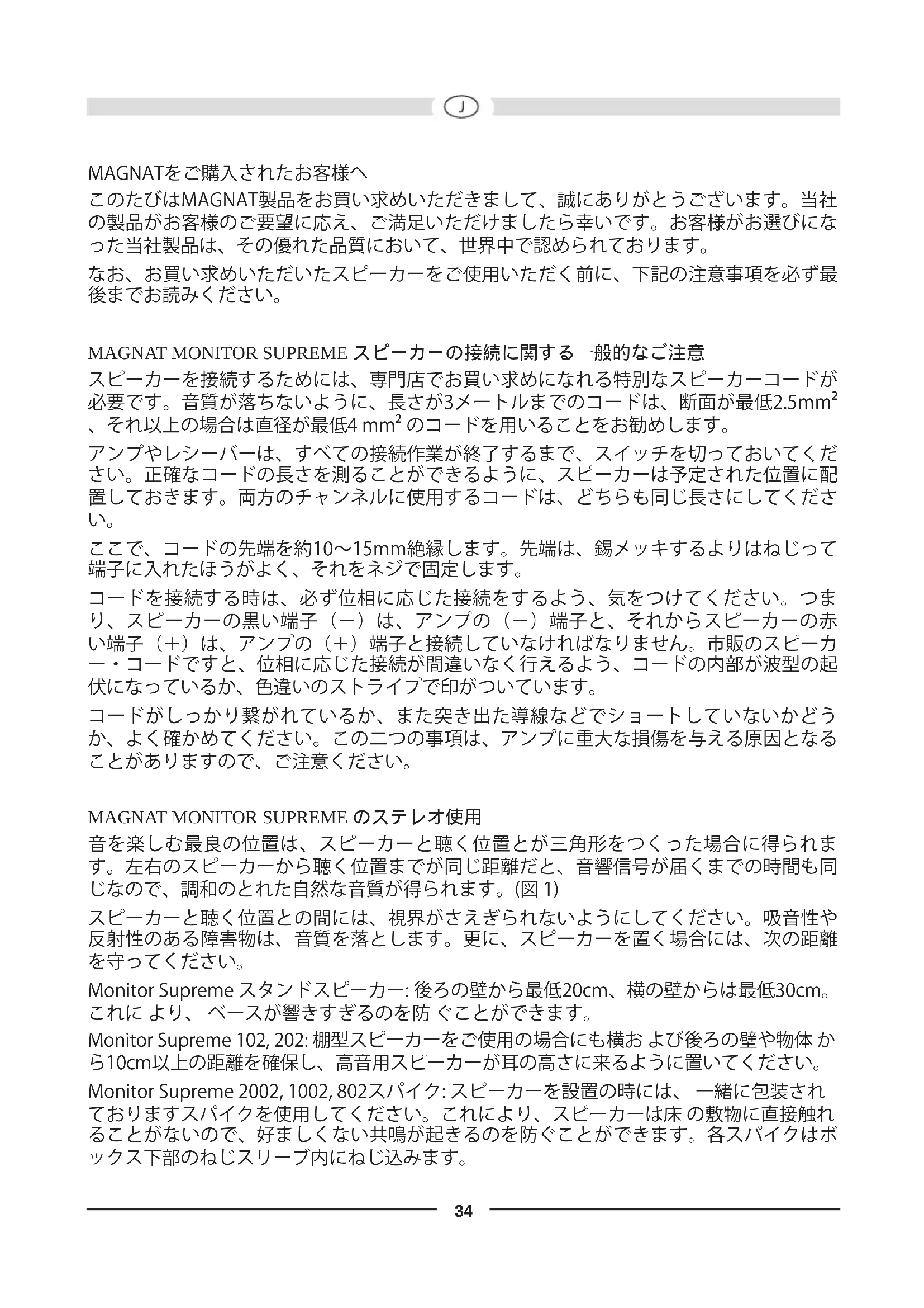 MAGNAT MONITOR SUPREME スピーカーの接続に関する一般的なご注意