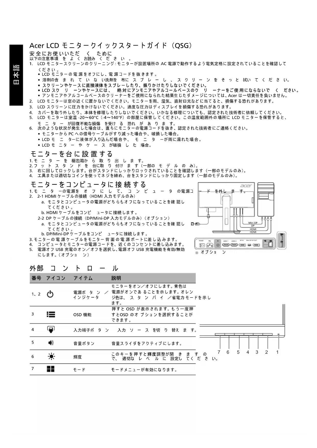 Magnet简体中文日本語 Acer LCD モニタークイックスタートガイド (QSG) 安全にお使いいただ く ために 以下の注意事項 を よ く お読み く だ さ い 。