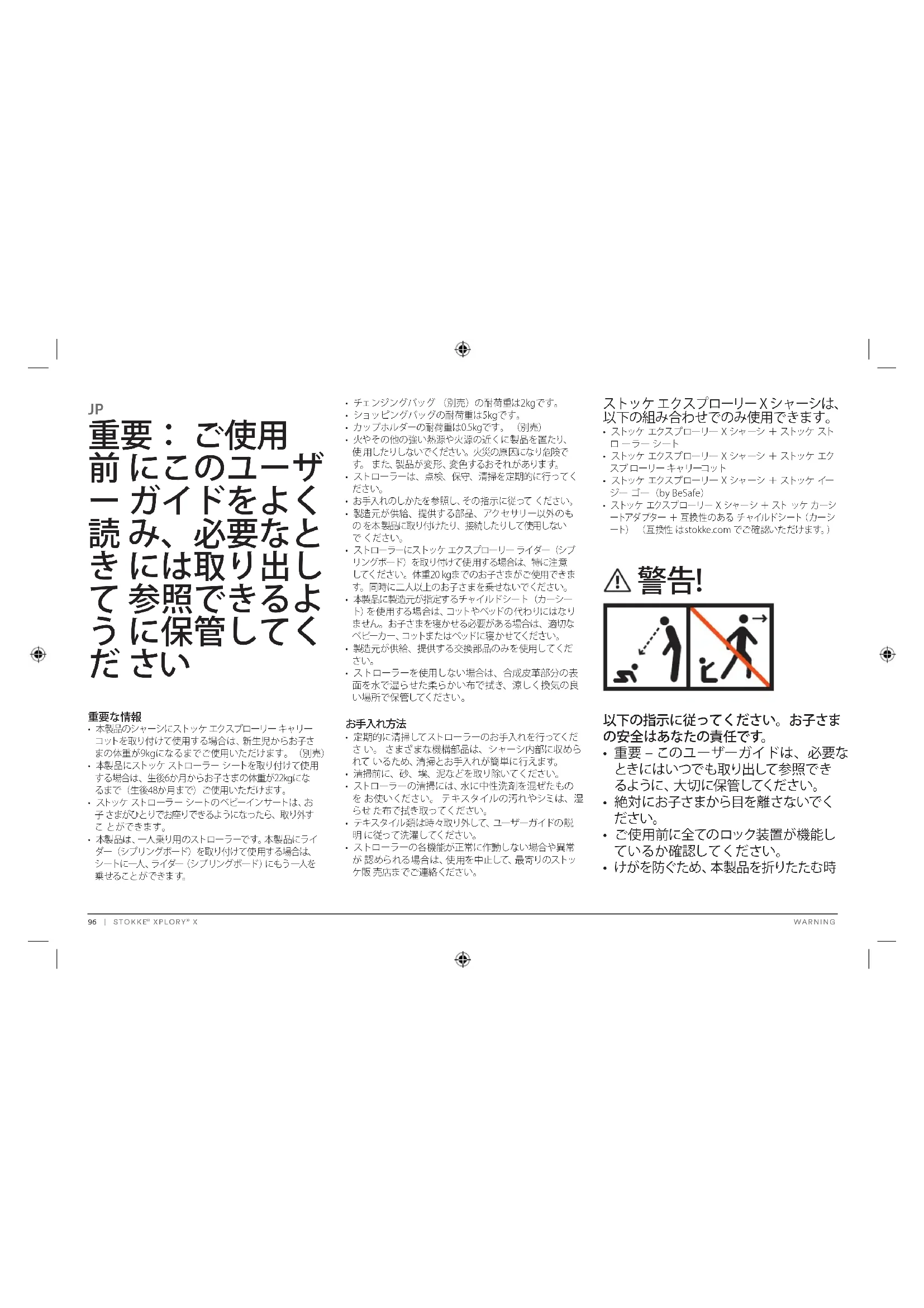 弊社は保 証を行使いただく際に不具合品を同等の 部 品と取り替える権 利を保 持します。WARNING STOKKE XPLORY X | 99
