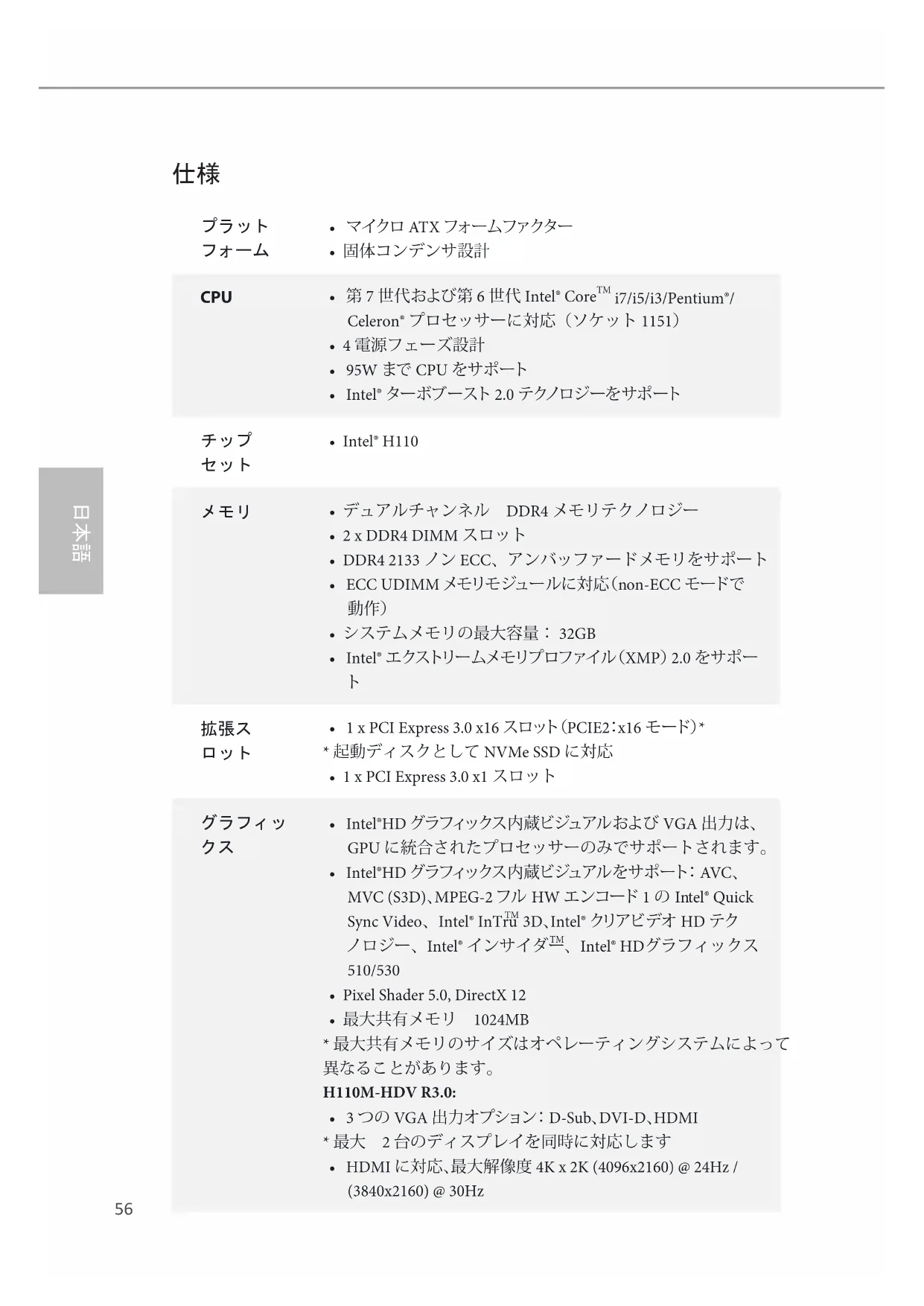 - 1 x DVI-D ポート H110M-DGS R3.0: