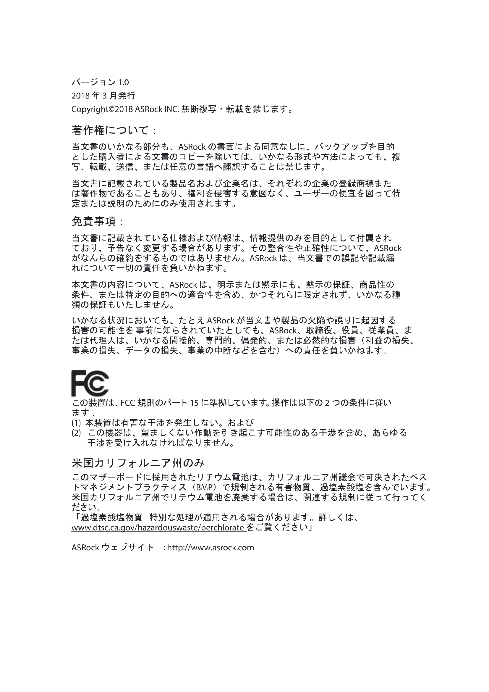 バージョン 1.0 2018 年 3 月発行 Copyright©2018 ASRock INC. 無断複写・転載を禁じます。