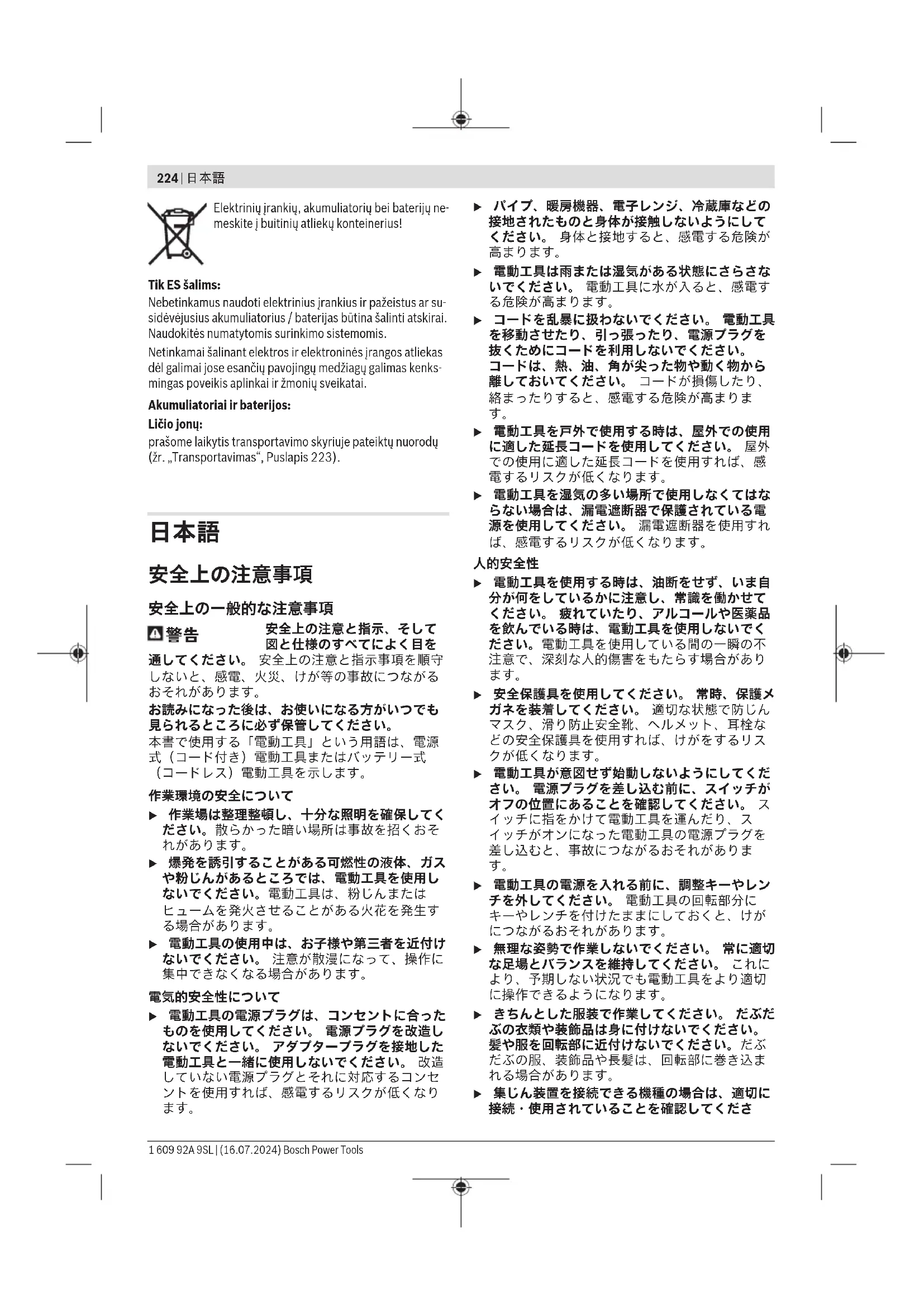 本製品は、リチウムイオンバッテリーを内蔵して います。リチウムイオンバッテリーは、リサイク ル可能な貴重な資源です。使用済みバッテリーの リサイクル活動にご協力くださいますよう、お願 いいたします。ご使用済みの製品本体を廃棄する ときは、本体を分解せず、製品本体ごとボッシュ 電動工具取扱店、ボッシュ電動工具サービスセン ター、またはJBRCリサイクル協力店へお持ちくだ
