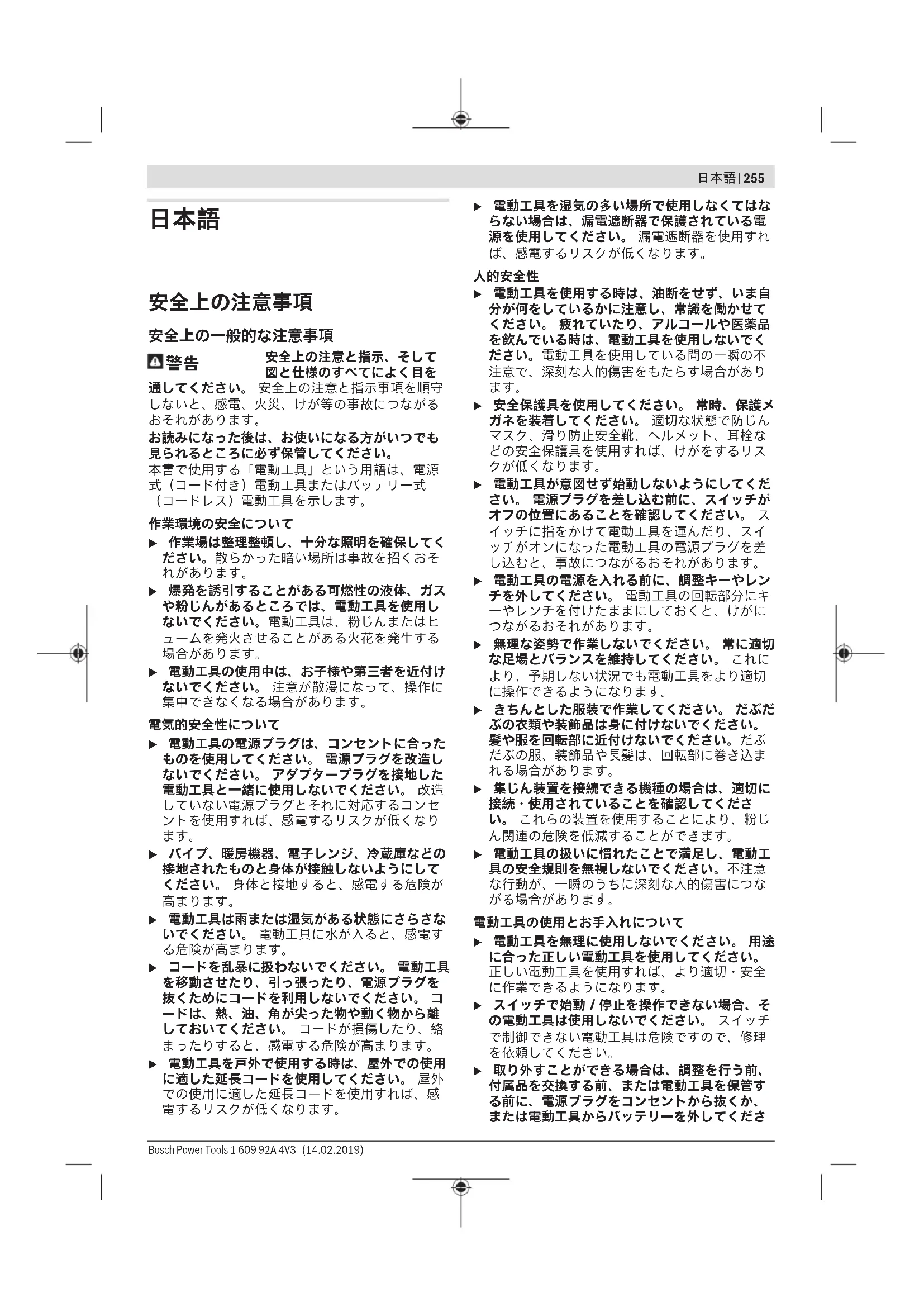 1 609 92A 4V3 | (14.02.2019) Bosch Power Tools中文 | 263 u 潤滑剤およびクリーニング剤の廃棄は、環境に 配慮して行ってください。法規を遵守してくだ