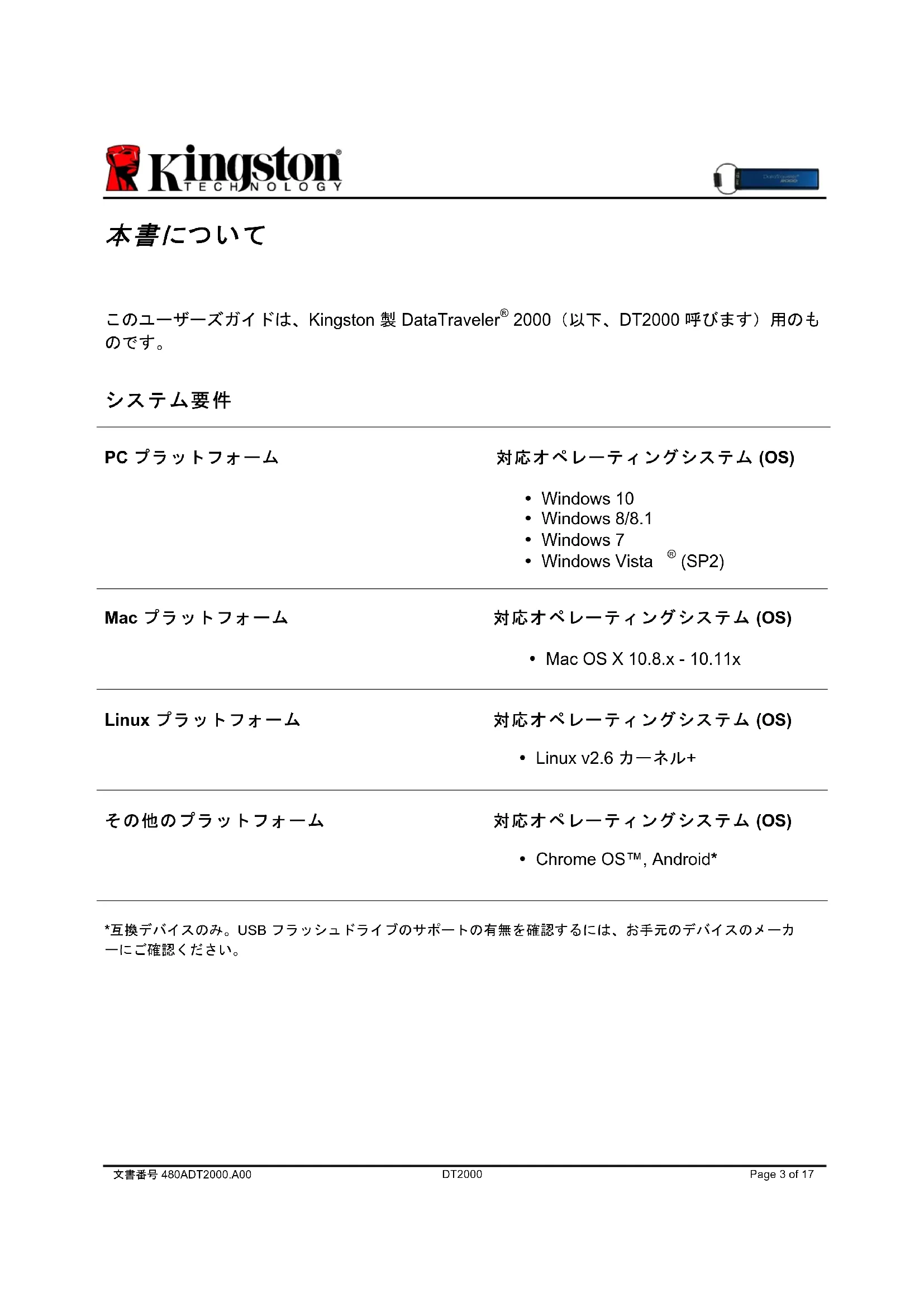 DataTraveler 2000 - USBメモリ KINGSTON - 無料のユーザーマニュアル