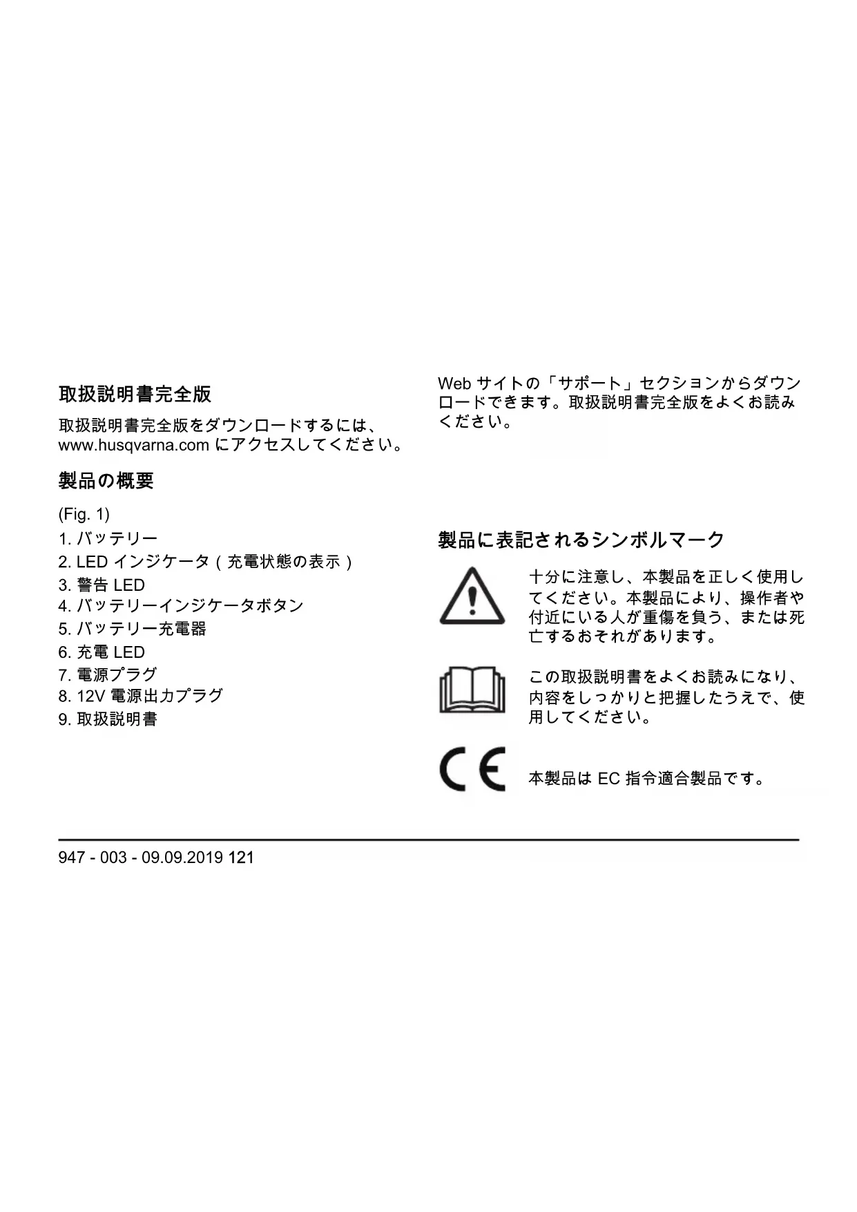 947 - 003 - 09.09.2019 121本製品や本製品のパッケージは、一般