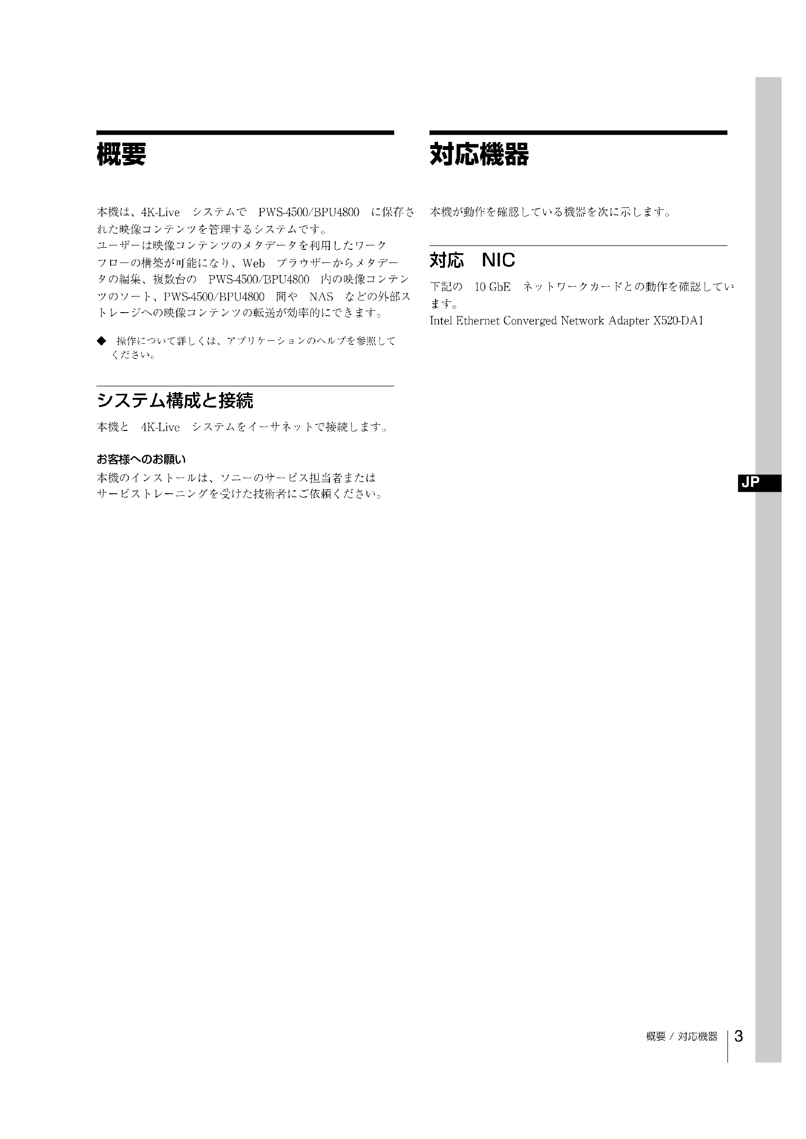 本機は、4K-Live ニステム PWS-4500/BPU4800 に保存た映像コンテルを管理するステムです。