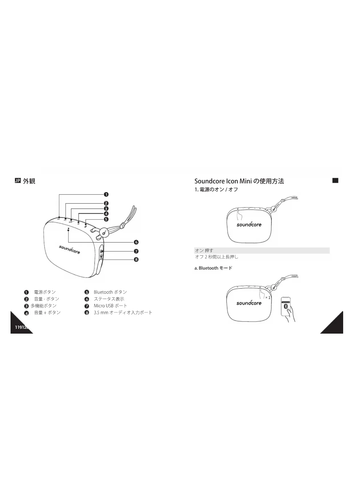 オフ 2 秒間以上長押し a. Bluetooth モード Soundcore Icon Mini × 1JP JP