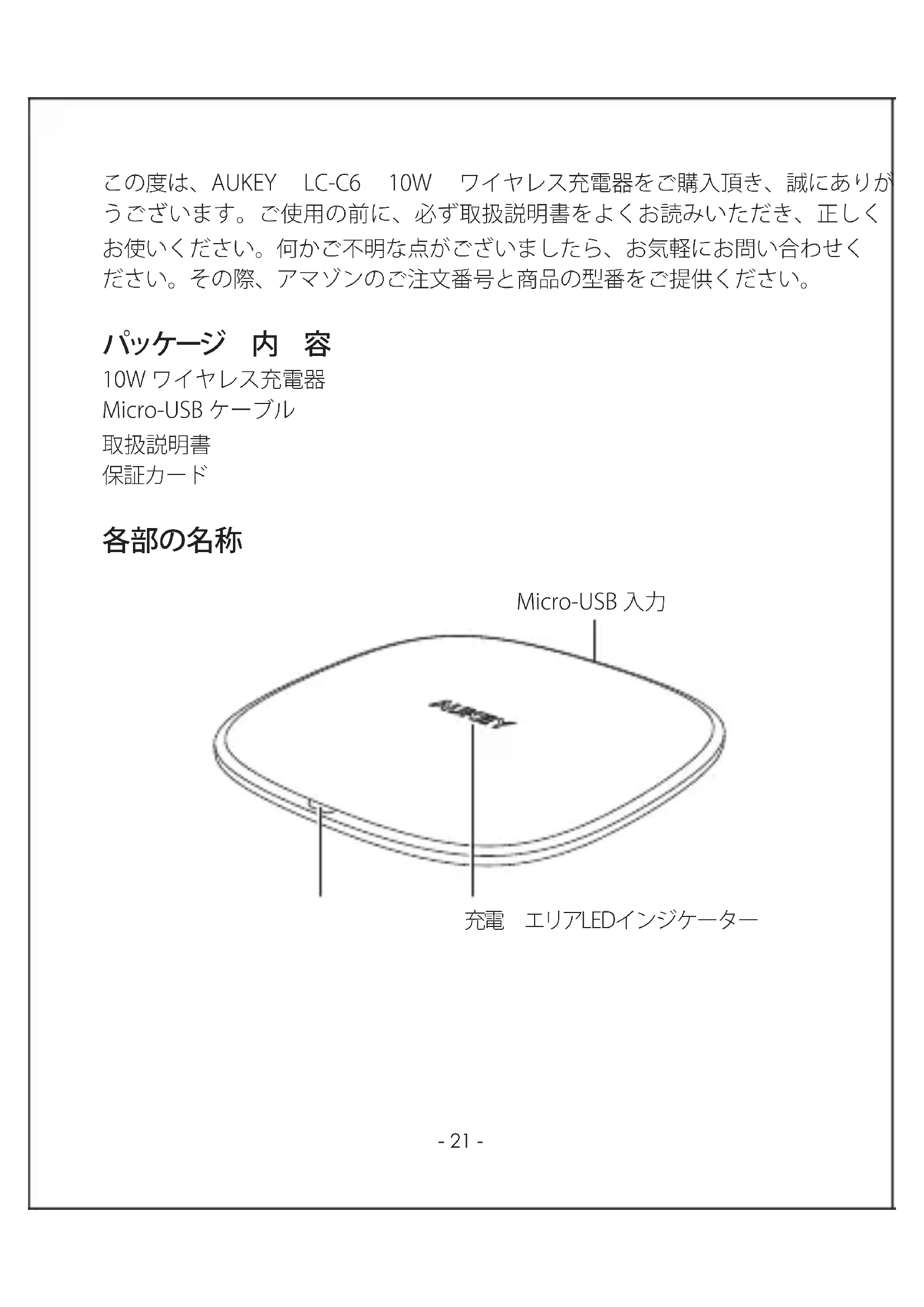 この度は、AUKEY LC-C6 10W ワイヤレス充電器をご購入頂き、誠にありがと