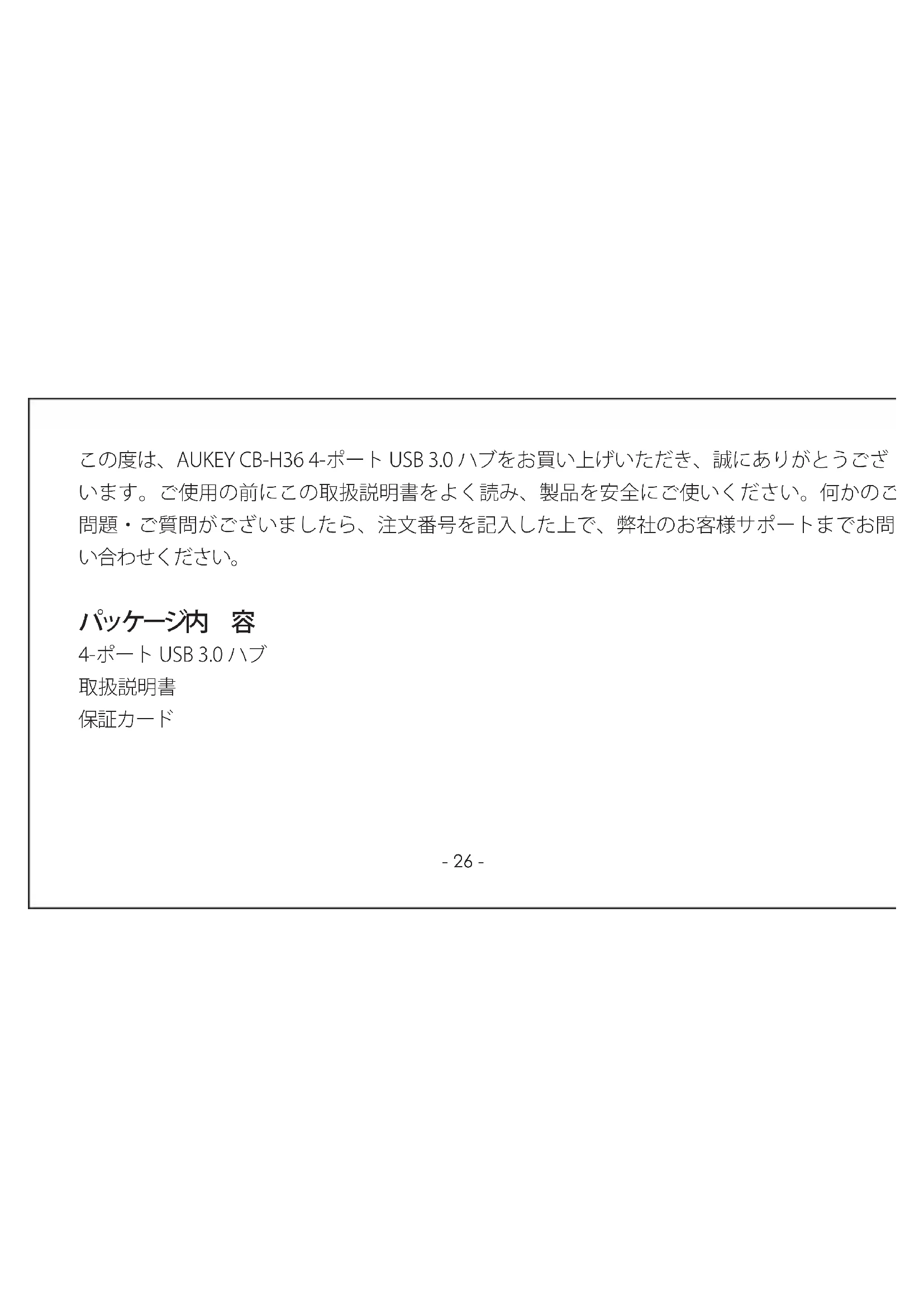 この度は、AUKEYCB-H364-ポートUSB3.0ハブをお買い上げいただき、誠にありがとうござ