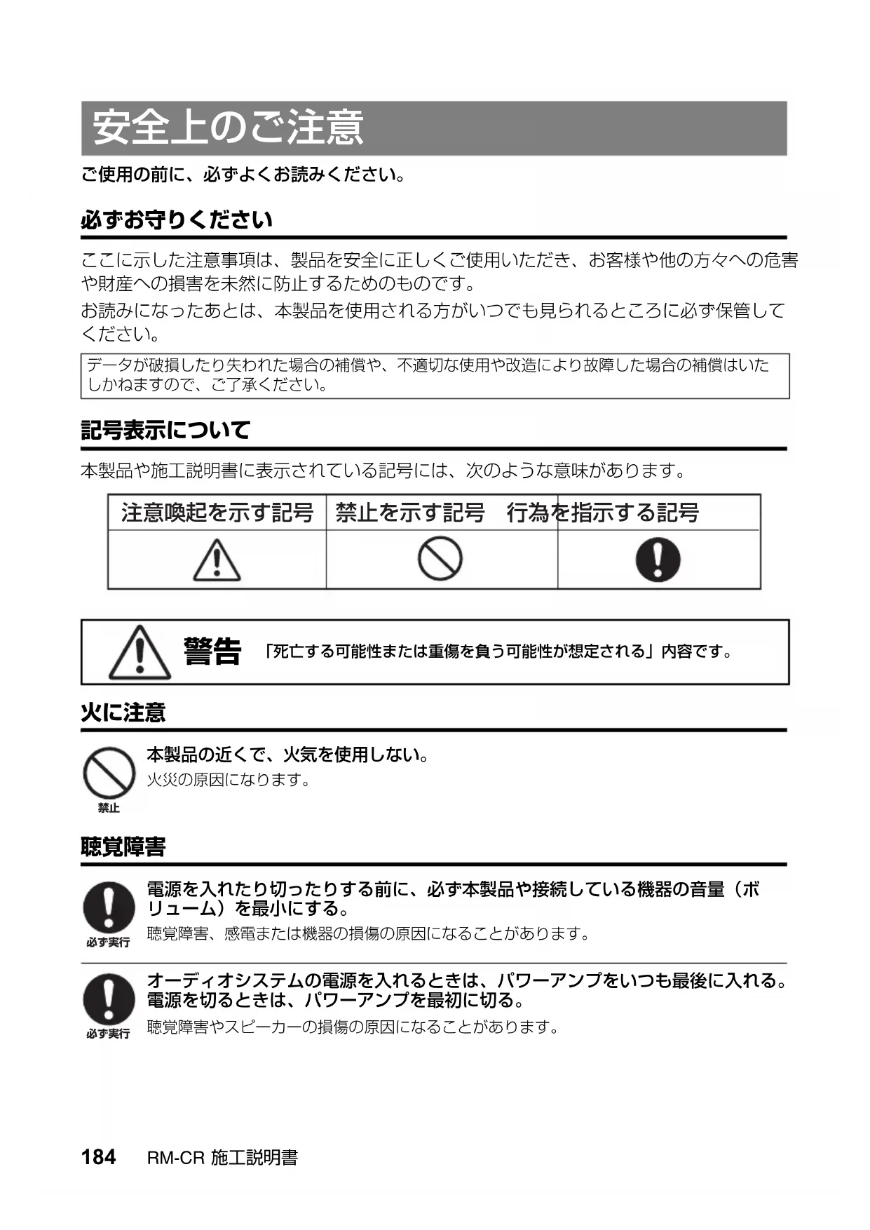 製造番号184 RM-CR施工説明書 ご使用の前に、必ずよくお読みください。