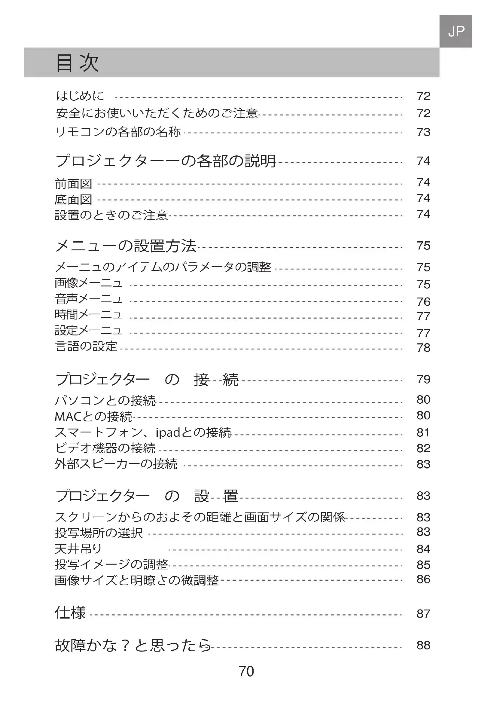 87 88はじめに このたびは、YABERY30プロジェクターーをお買い上げいただき誠にありがとうございました。 ご使用前にこの取扱説明書をよく読みください。また、お手元に置き、いつでも確認できるように