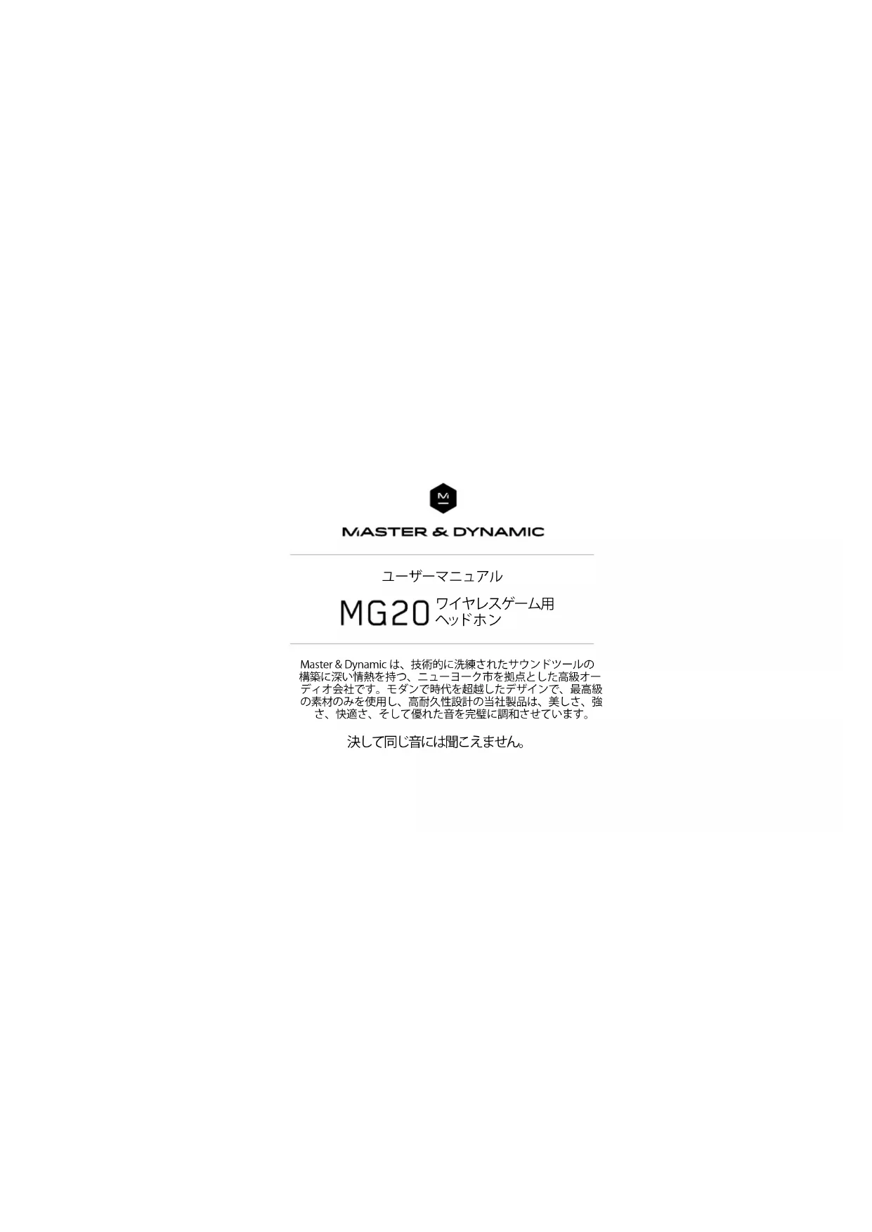 デバイスのマニュアルを無料で見つける MG20 MASTER DYNAMIC PDF形式.